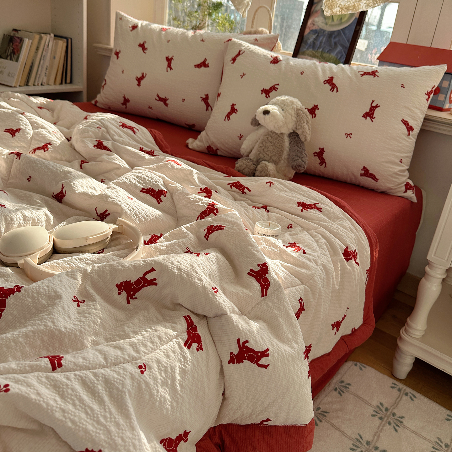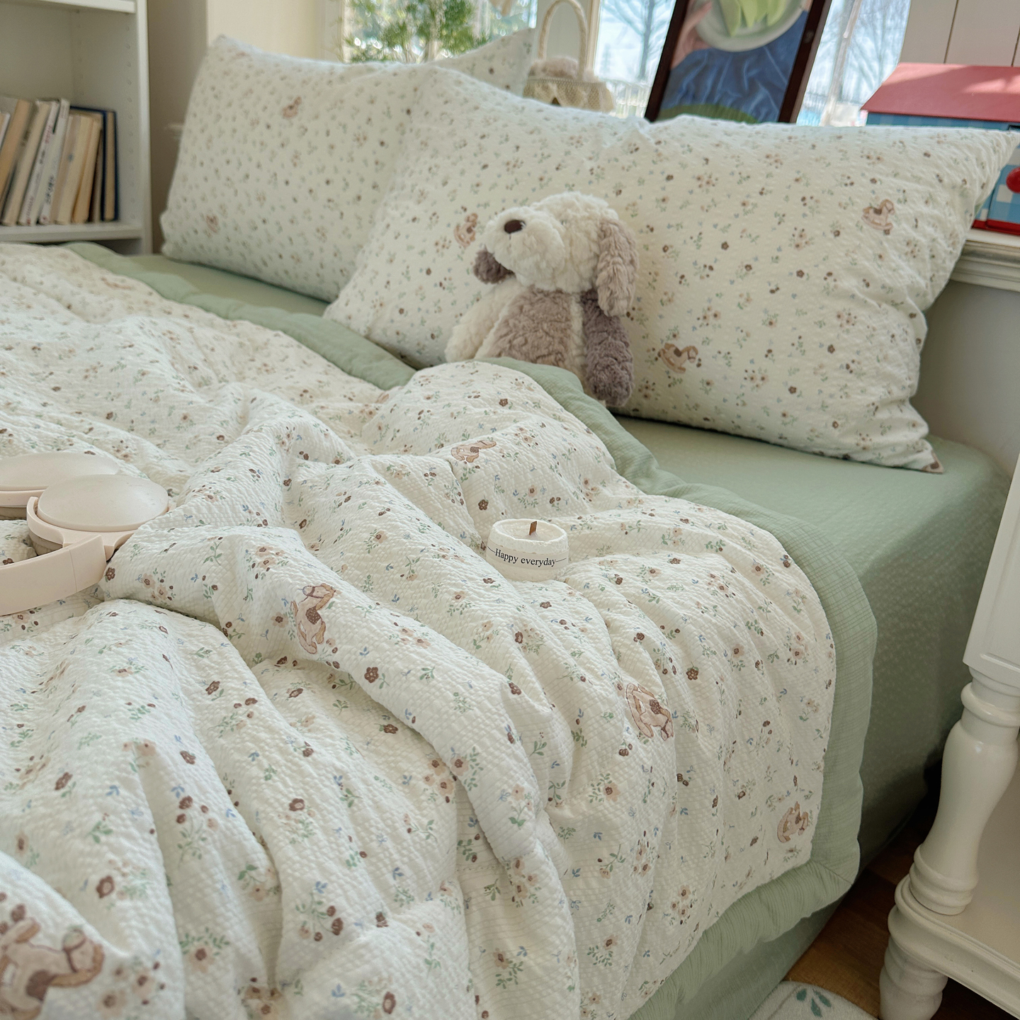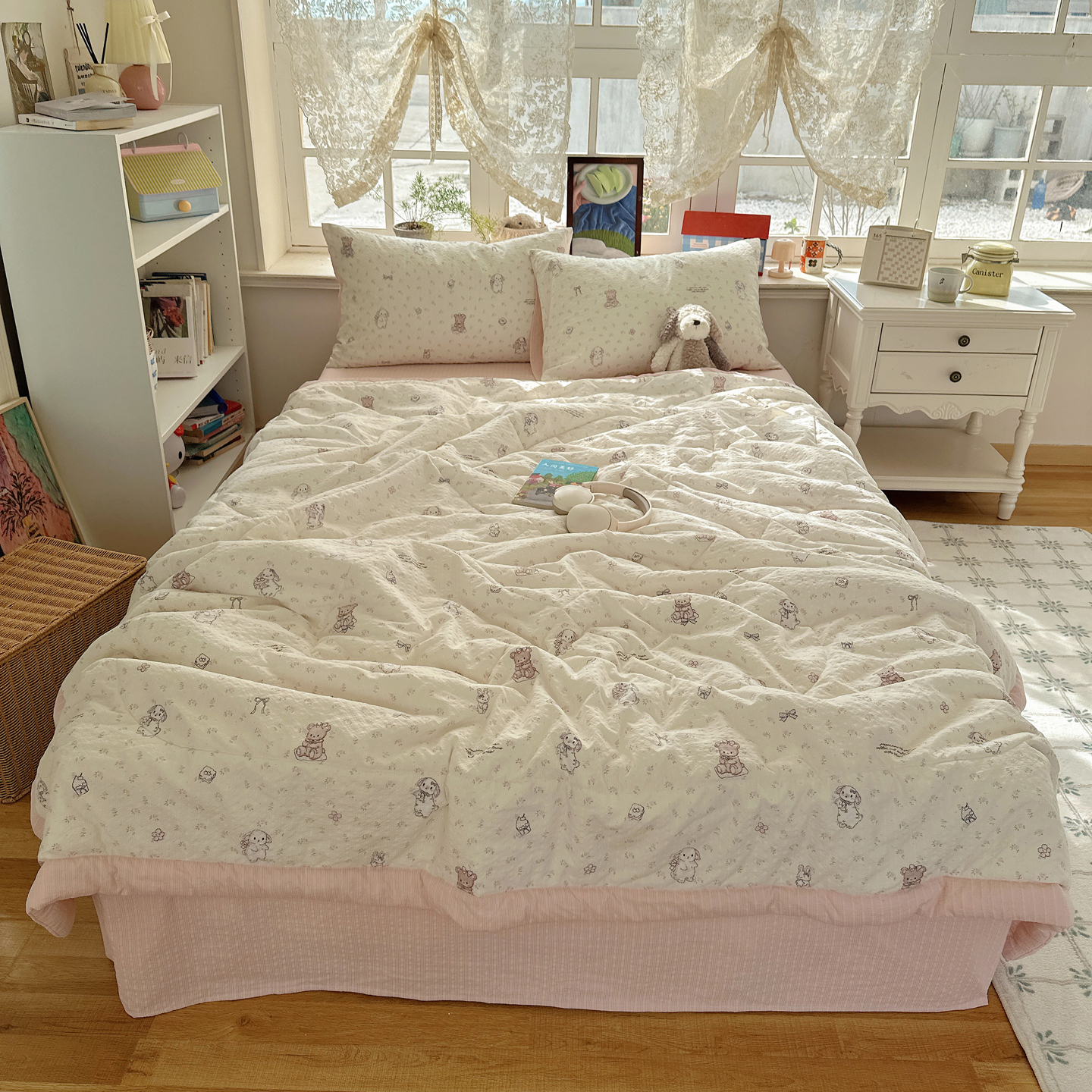 • 91家纺网 家纺一手货源 找家纺 (总)梵克保罗 2026春夏新款10A抗菌毛球花边皱皱纱夏被单夏被空调被夏被四件套,花乡小熊,蓝星狗,乐趣,萌兔花园,沐春,素锦纹,雾格马