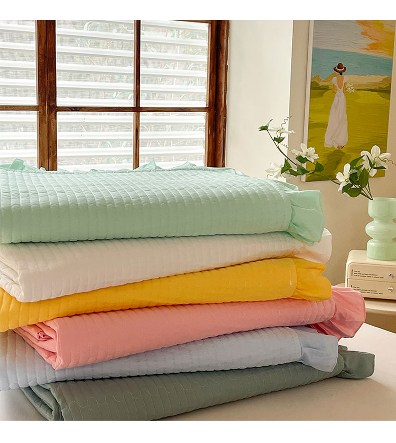 • 91家纺网 家纺一手货源 找家纺 (总)花香四季家纺 2026新款13376全棉夹棉床盖三件套13372纯棉纯色床盖花边公主风(可定制任意尺寸),薄荷绿,清新蓝,奶酪黄,气质灰,甜心粉,豆沙色,暮林绿,荔枝粉,象牙白,芝士黄,组合图