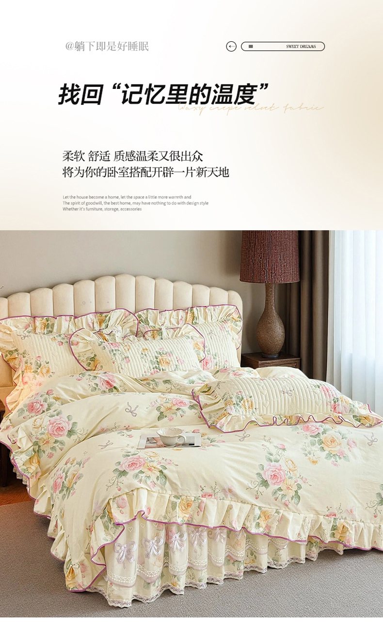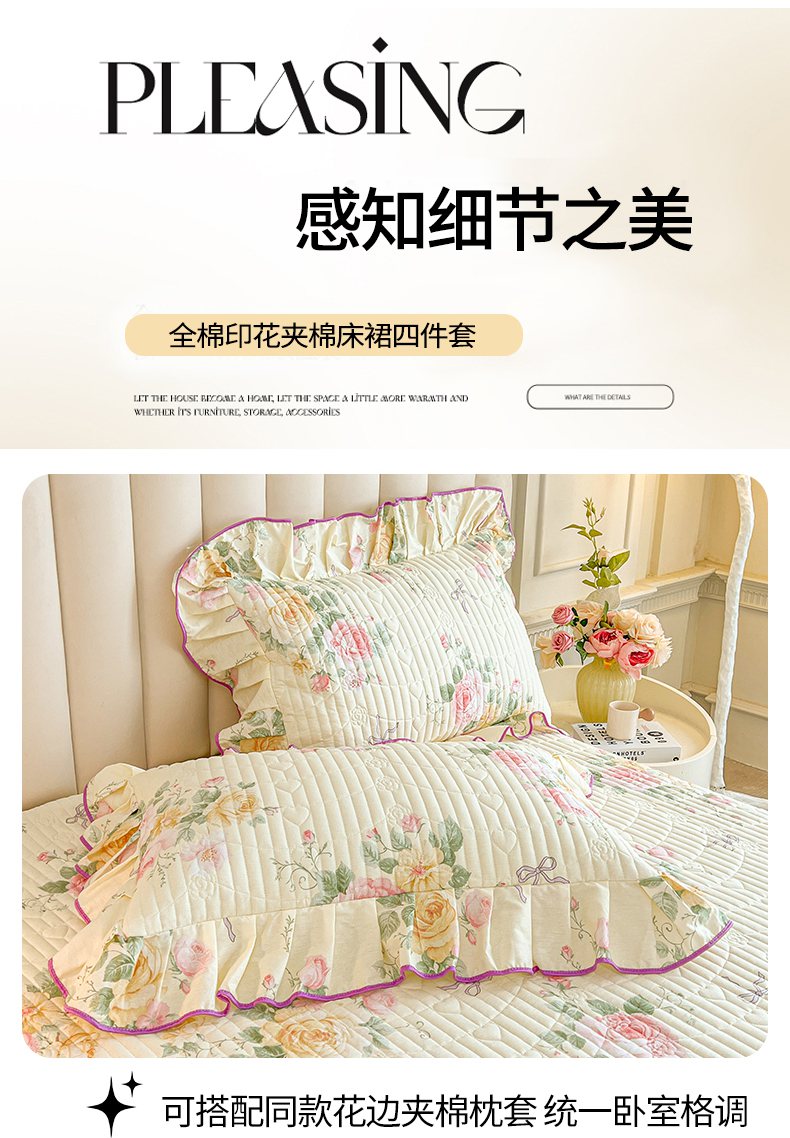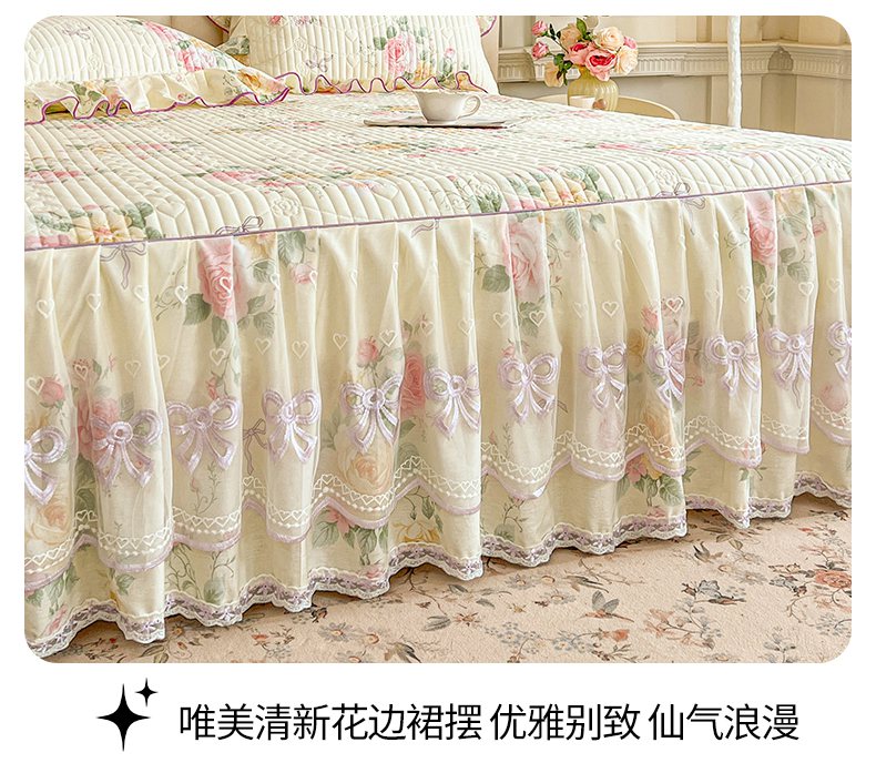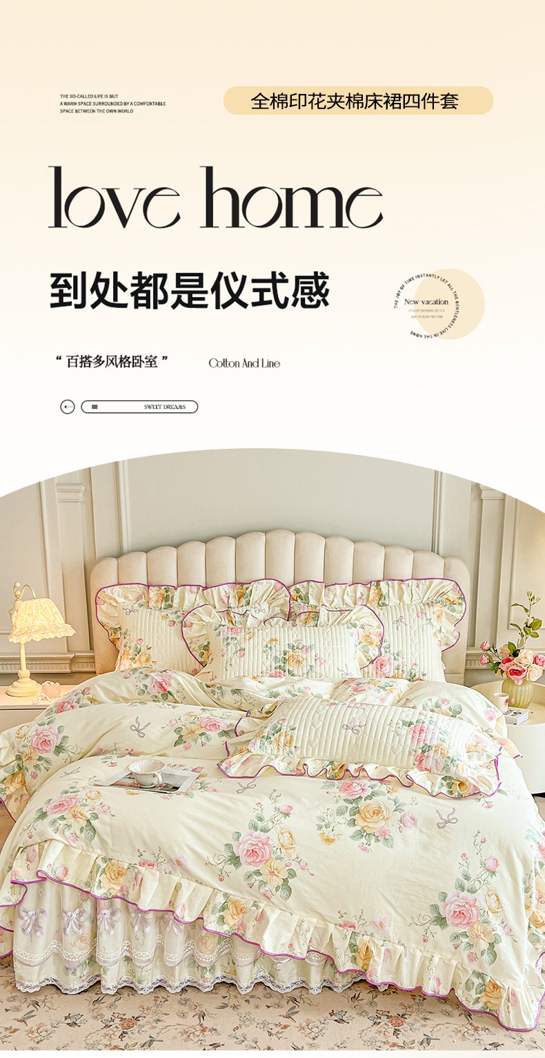 当前位置: 91家纺网 > 商品网购 > 床品套件 > 四件套 > 全棉普通四件套 > 宜凡家纺 2026新款全棉印花公主风夹棉床裙四件套 沐颜月朵