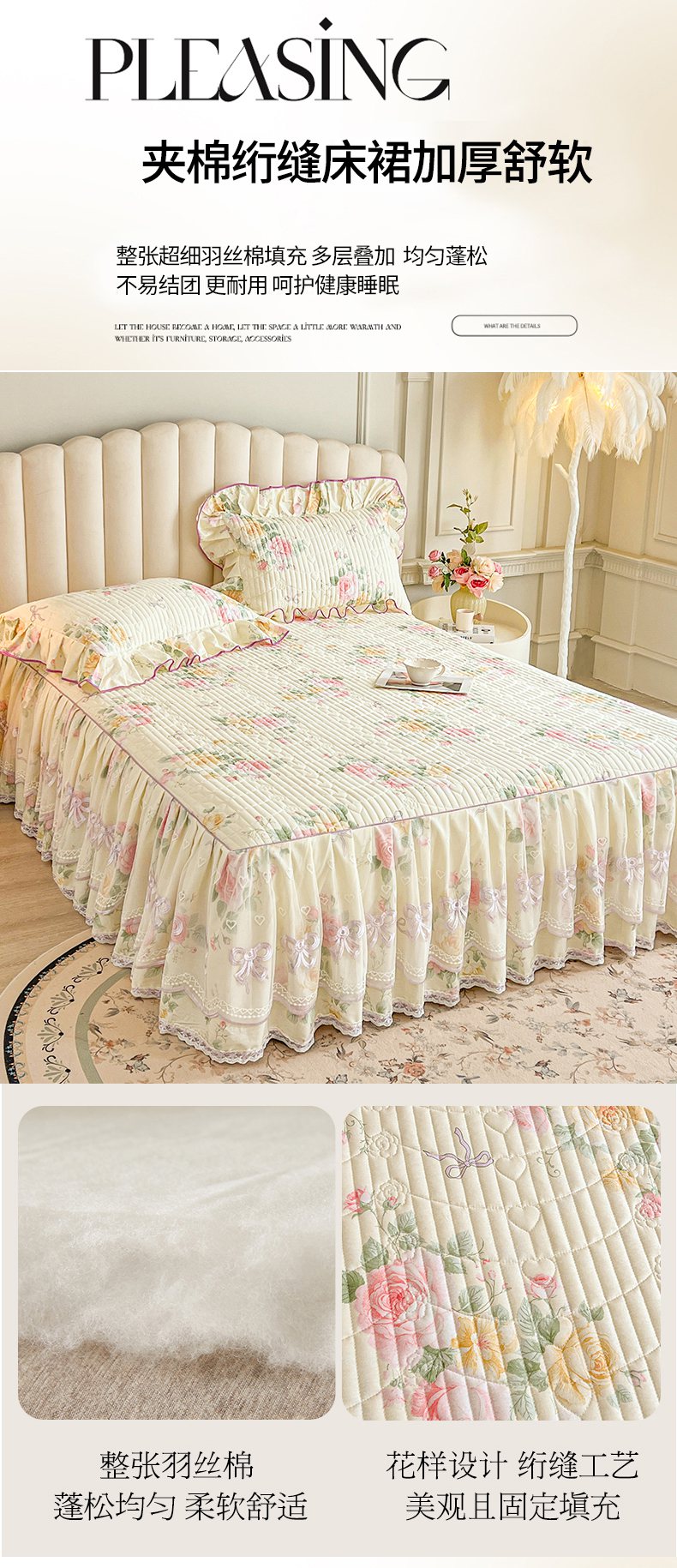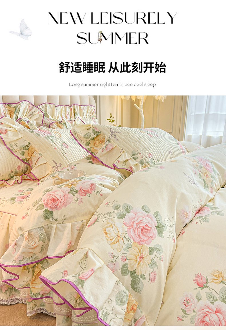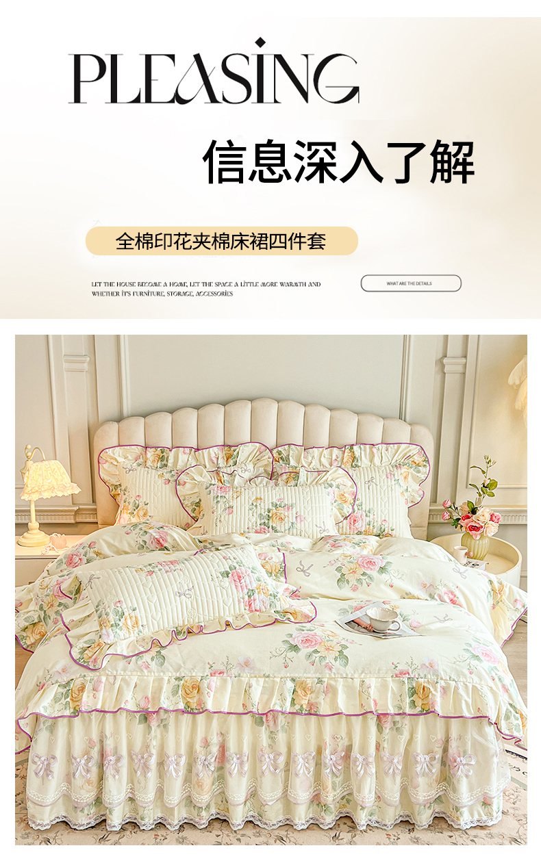 当前位置: 91家纺网 > 商品网购 > 床品套件 > 四件套 > 全棉普通四件套 > 宜凡家纺 2026新款全棉印花公主风夹棉床裙四件套 沐颜月朵