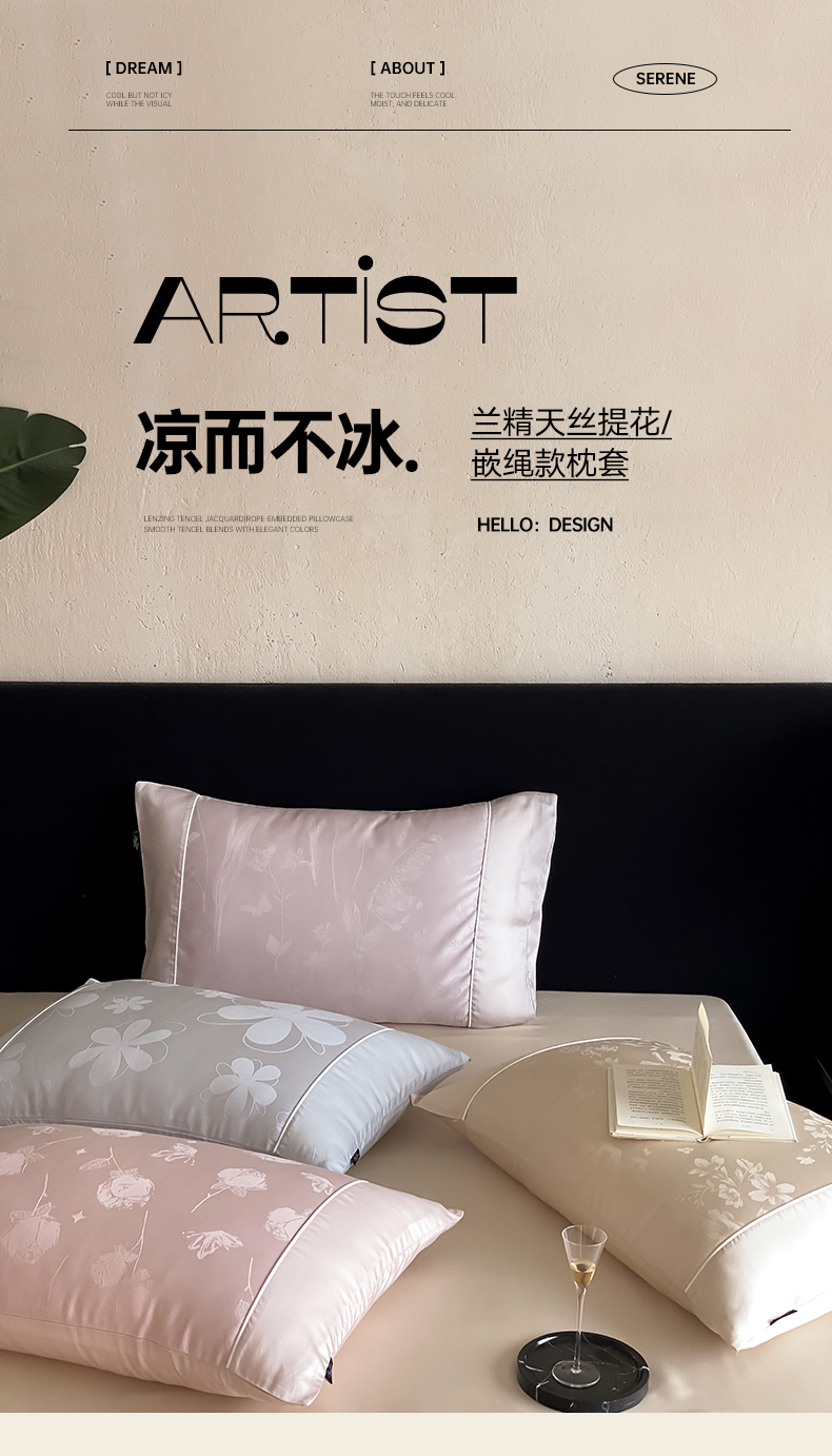 (总)FORTWO家纺原创设计(FOR TWO家纺) 2026新款60兰精天丝提花嵌绳单品枕套雅颂系列,晨露织光,琉璃梦境,一路向阳,云间霓裳,组合图