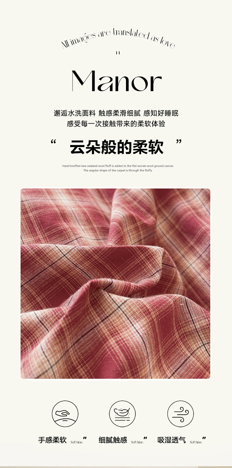(总)花香四季家纺 2026新款简约全棉高织高密色织纯棉水洗棉四件套,黑巧,焦糖,慕斯,奶茶,组合图仅供参考 不可下单,黑桃A