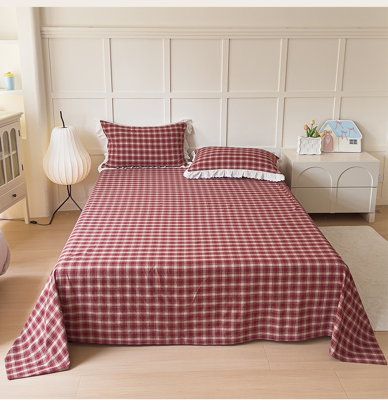 (总)花香四季家纺 2026新款全棉色织水洗棉格子系列纯棉单双人床单单件,黑巧,黑桃A,焦糖,慕斯,奶茶