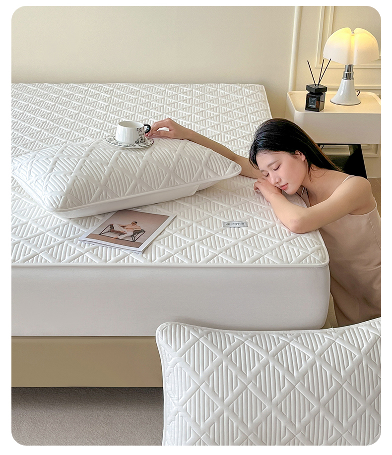 (总)居眠 2025新款防水夹棉床笠-清雅,清雅-粉色,清雅-灰色,清雅-卡其,清雅-绿色,清雅-米白,清雅-深蓝