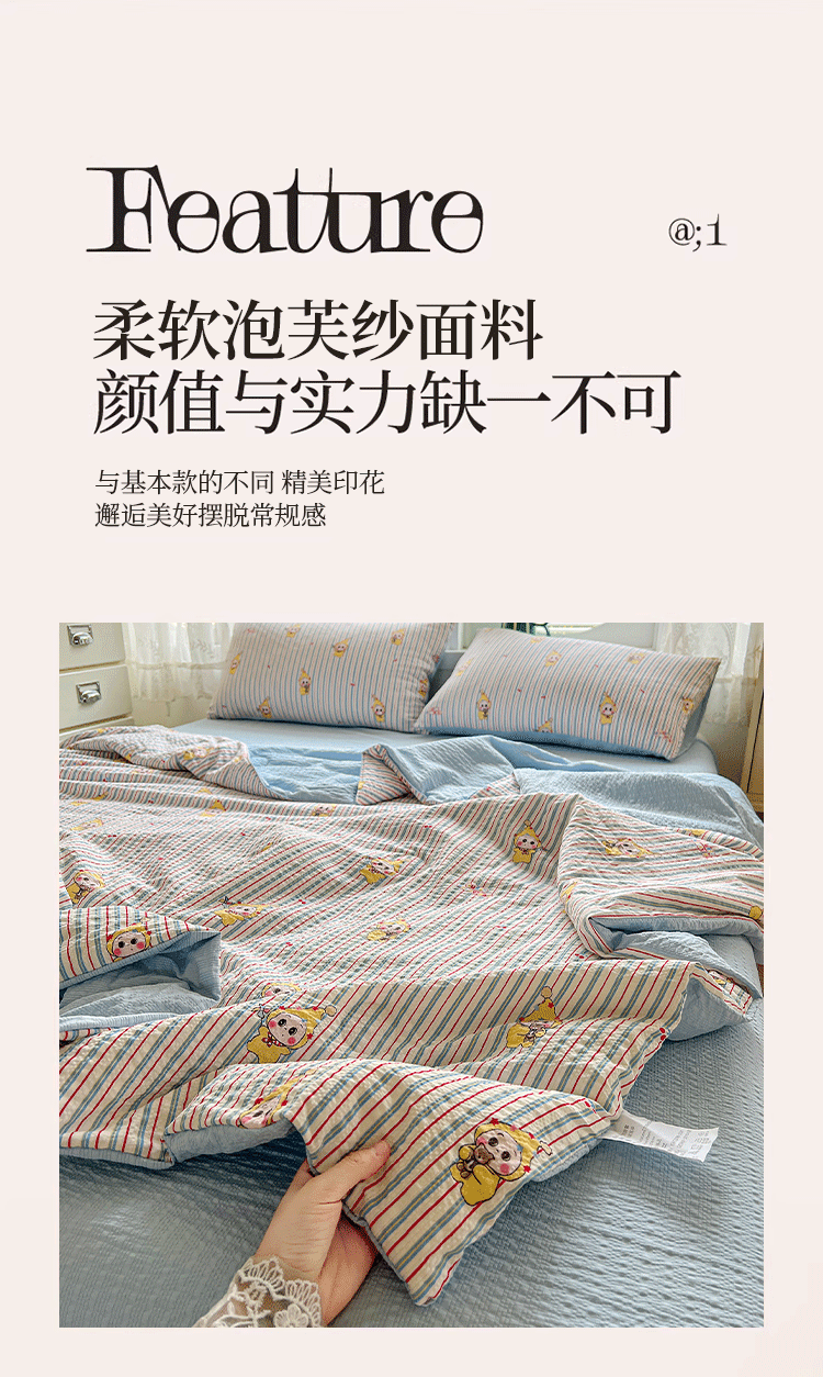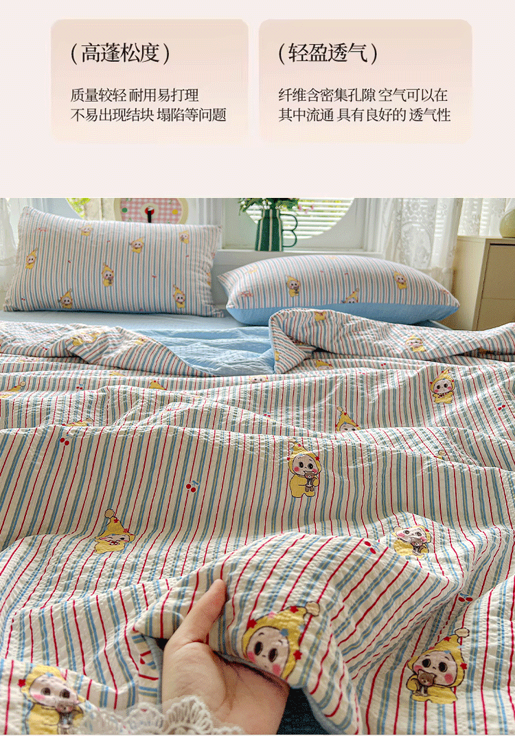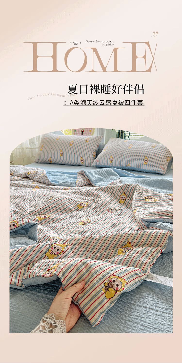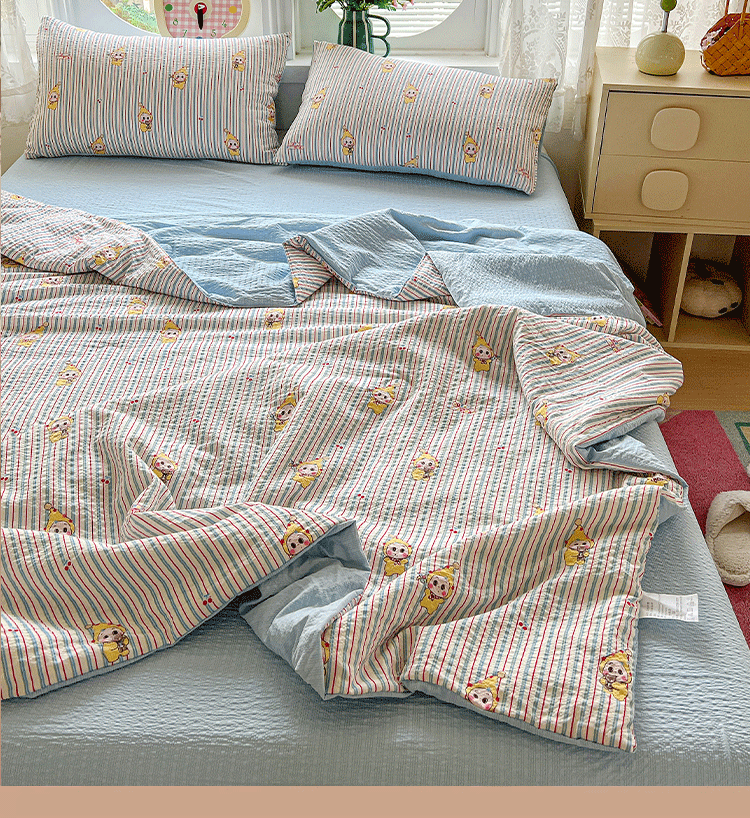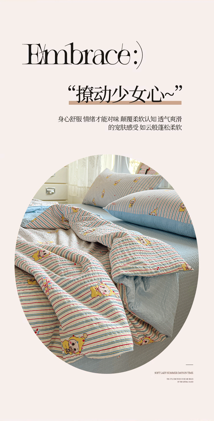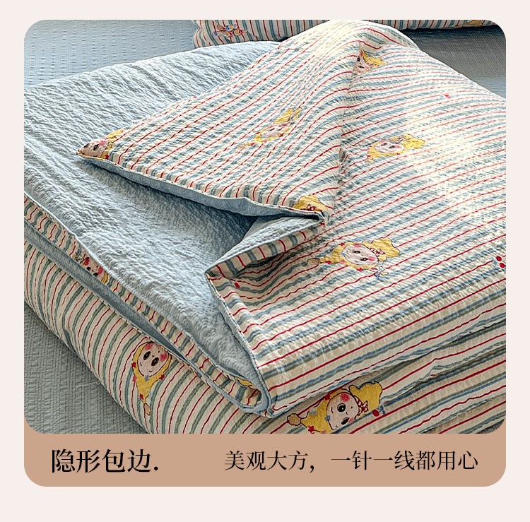商品名称:小桃姐家纺 2026新款泡芙棉双层纱夏被空调被四件套小清新泡泡纱夏被卡通夏凉被空调被 线条星星
