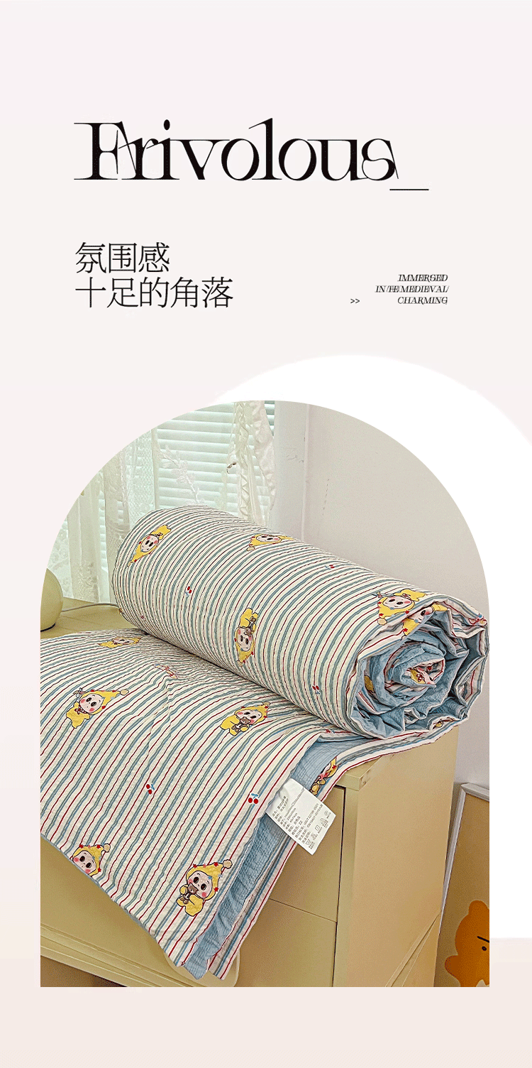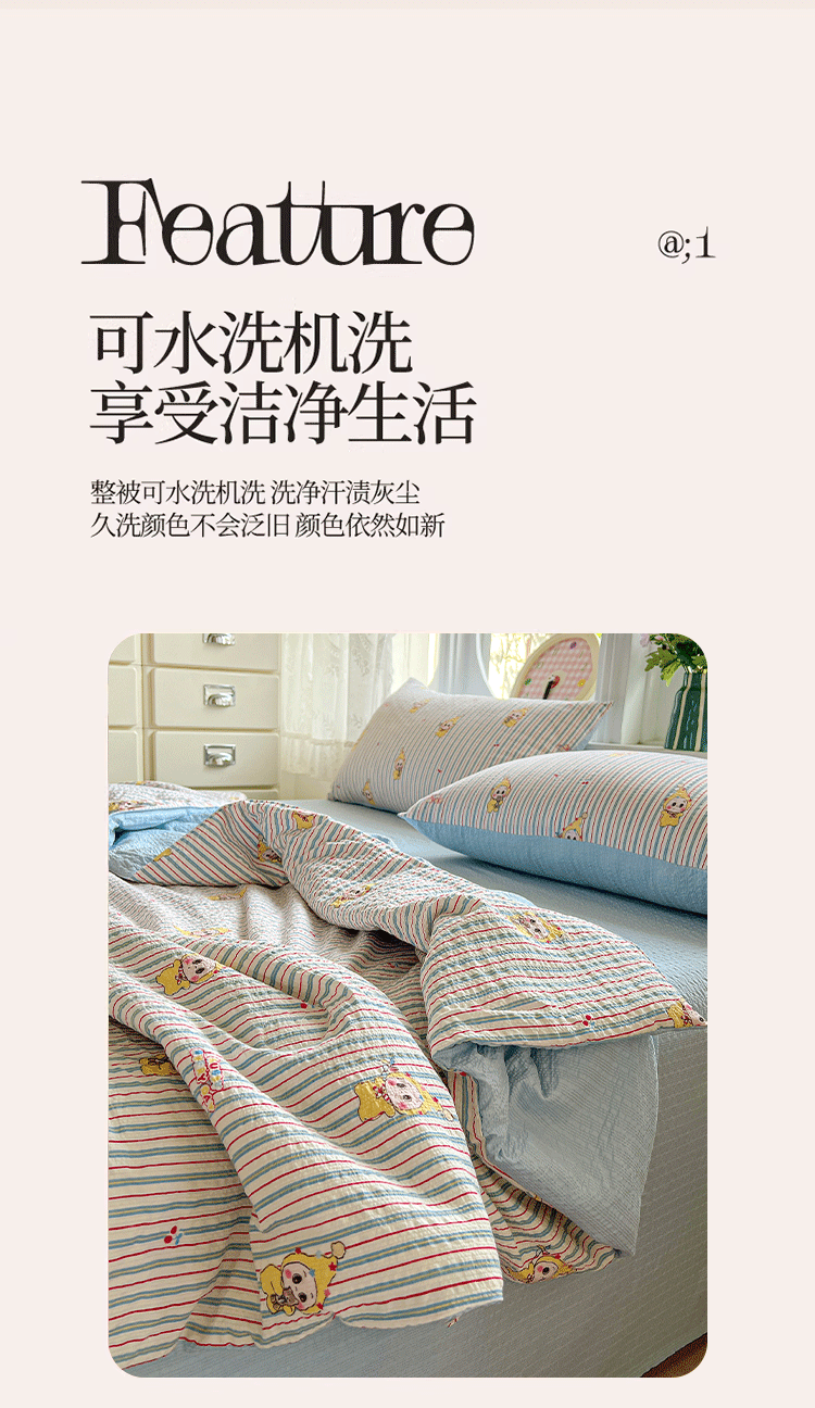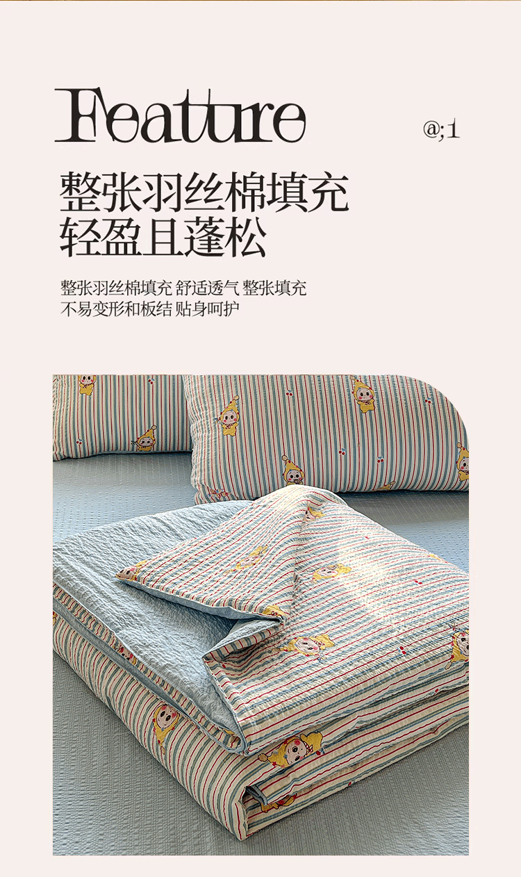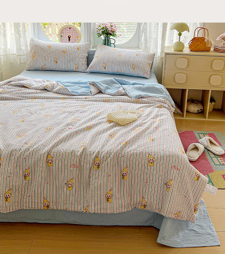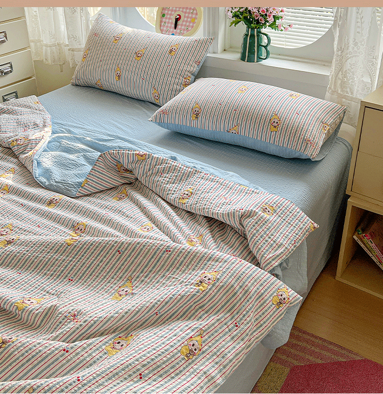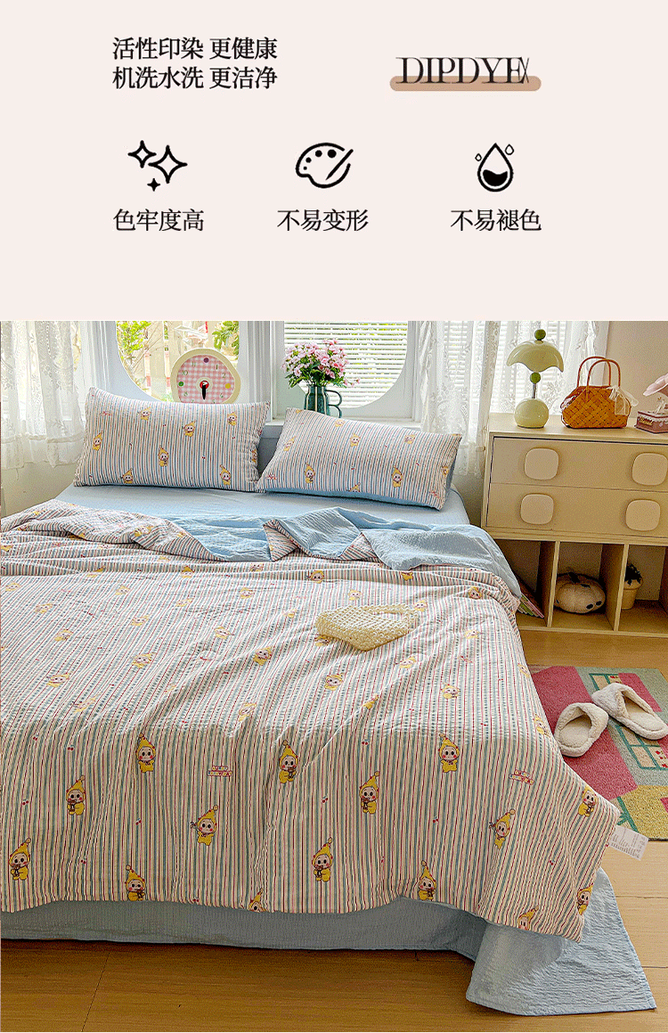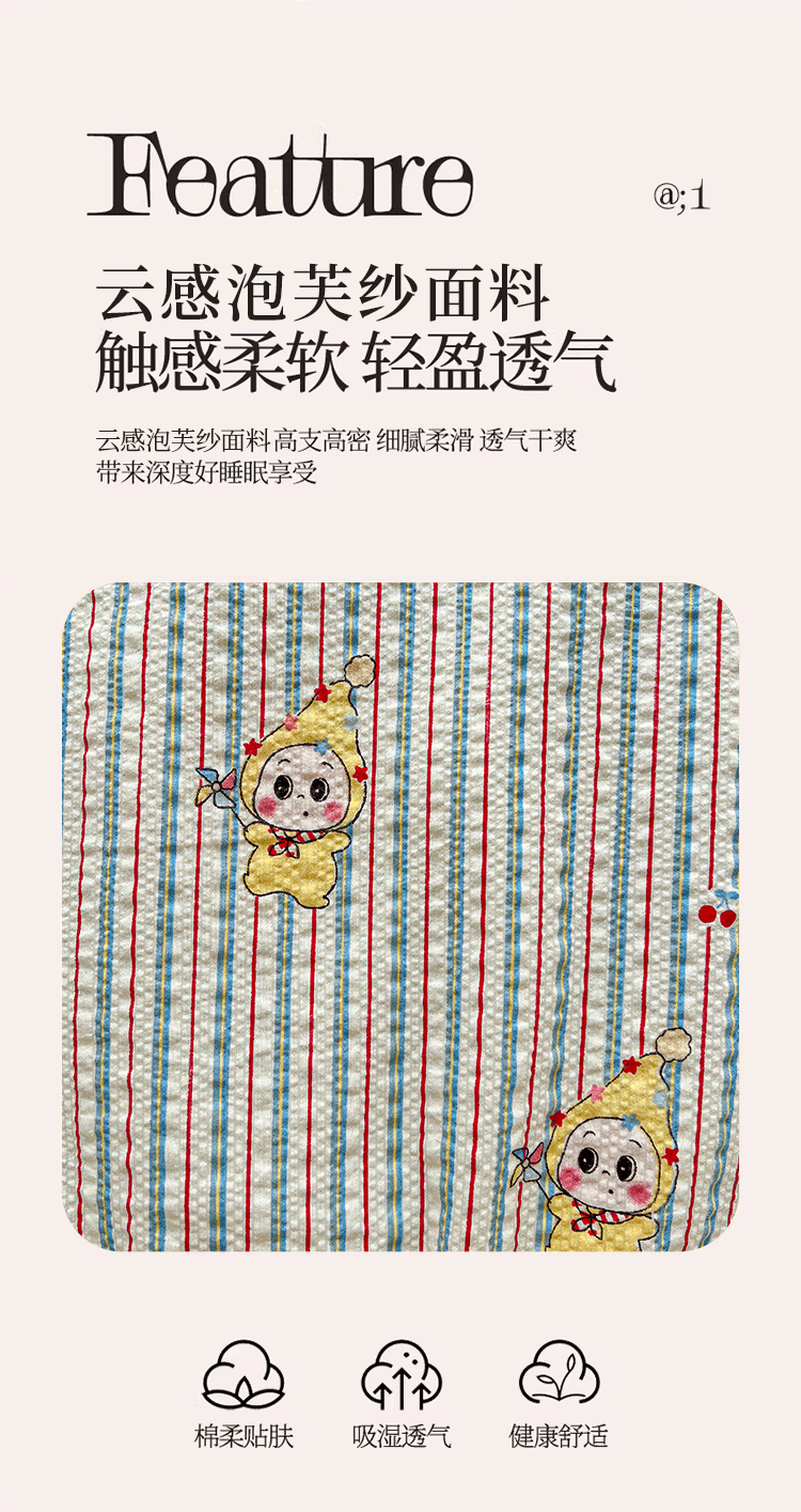 商品名称:小桃姐家纺 2026新款泡芙棉双层纱夏被空调被四件套小清新泡泡纱夏被卡通夏凉被空调被 线条星星