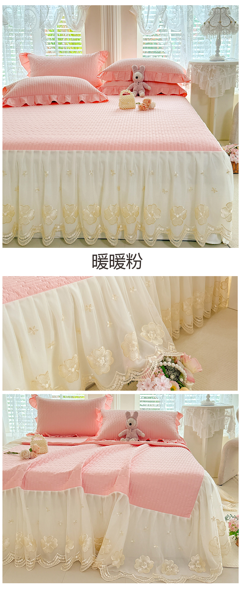 • 91家纺网 家纺一手货源 找家纺 (总)花香四季家纺 2026新款全棉夹棉绗缝床裙三件套纯棉纯色蕾丝公主风床裙单件-蕾丝小姐,组合图仅供展示不可下单,蕾丝小姐-豆沙,蕾丝小姐-海盐蓝,蕾丝小姐-奶油米,蕾丝小姐-暖暖粉,蕾丝小姐-清新绿,蕾丝小姐-绅士灰