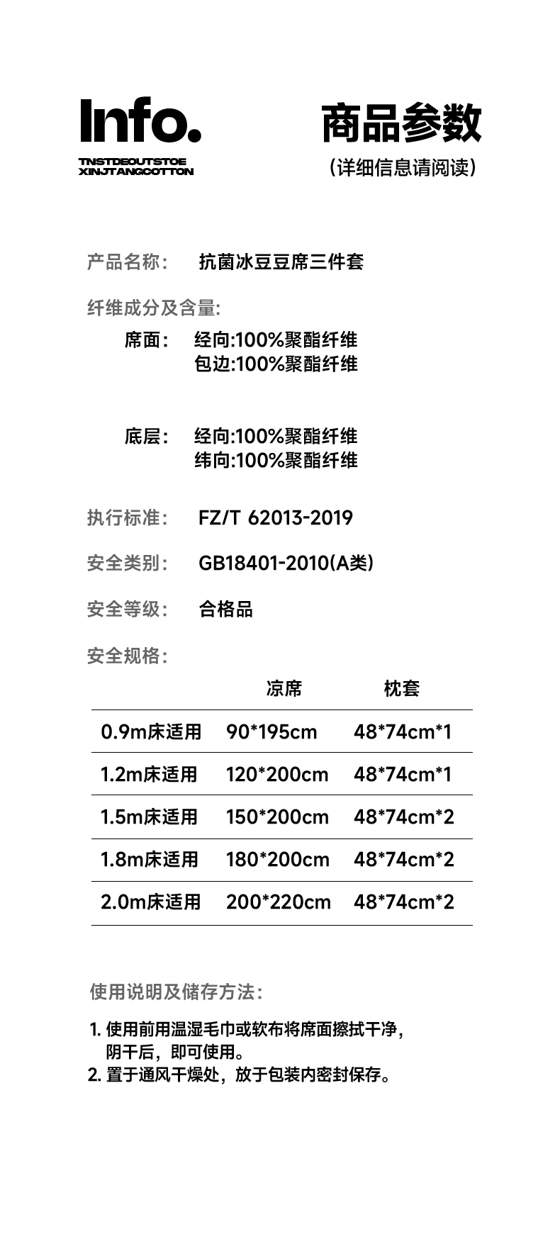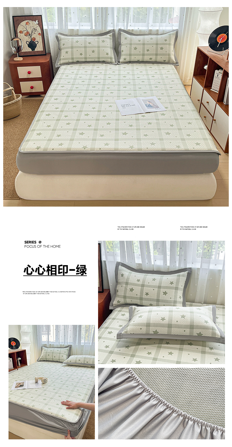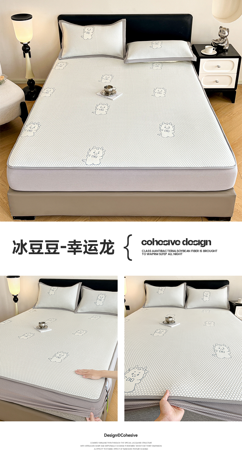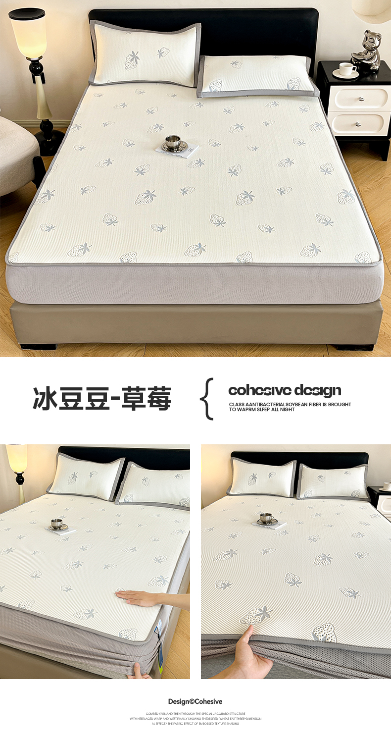 (总)摩妮卡 2026新款PE中分子凉感冰豆豆凉席三件套床笠三件套,心心相印-绿,心心相印-灰,心心相印-蓝,冰豆豆-宝贝熊,冰豆豆-冰暴熊,冰豆豆-草莓,冰豆豆-萌兔兔,冰豆豆-幸运龙,冰豆豆-熊仔,冰豆豆-叶初