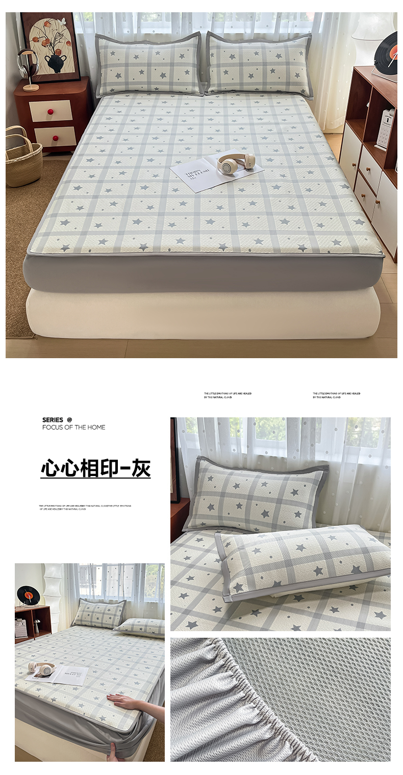 (总)摩妮卡 2026新款水洗棉夹棉防水床褥床垫款三件套,几何-卡其,几何-奶白,几何-浅粉,几何-天蓝