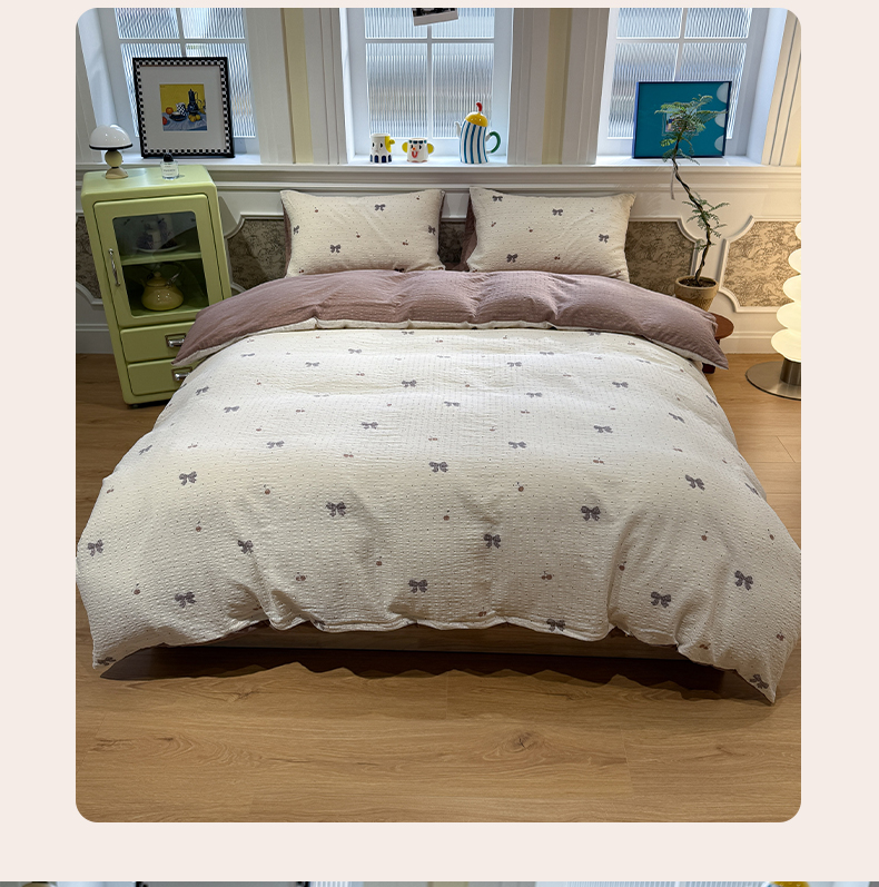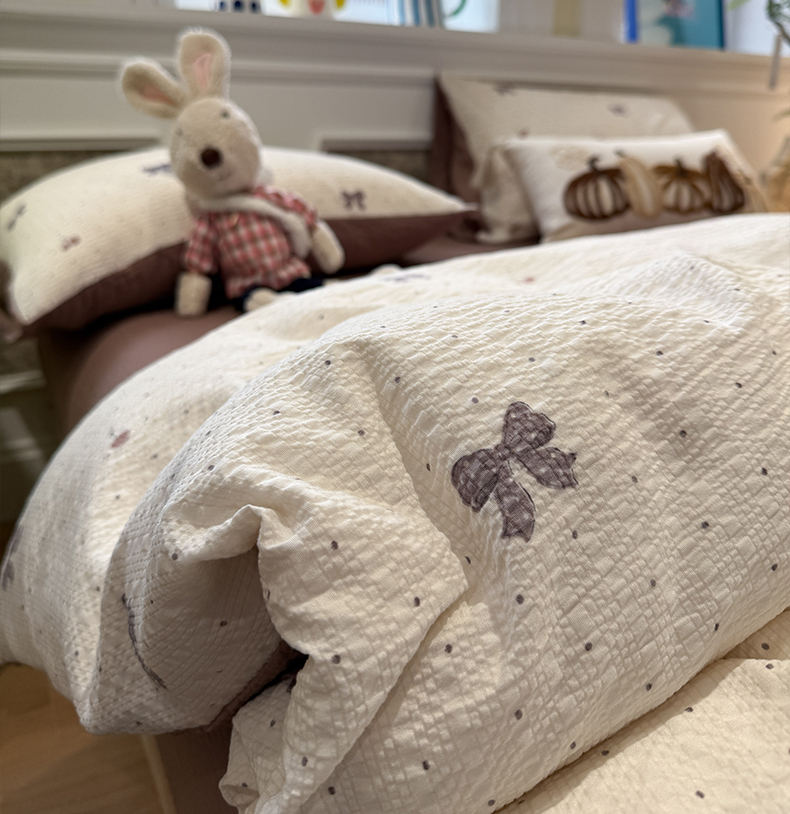 当前位置: 91家纺网 > 商品网购 > 床品套件 > 四件套 > 化纤普通四件套 > 水墨江南 2026直播热款泡芙棉双层纱四件套 蝴蝶结果果