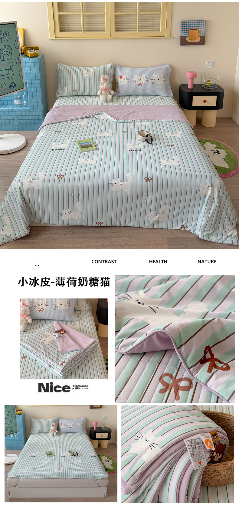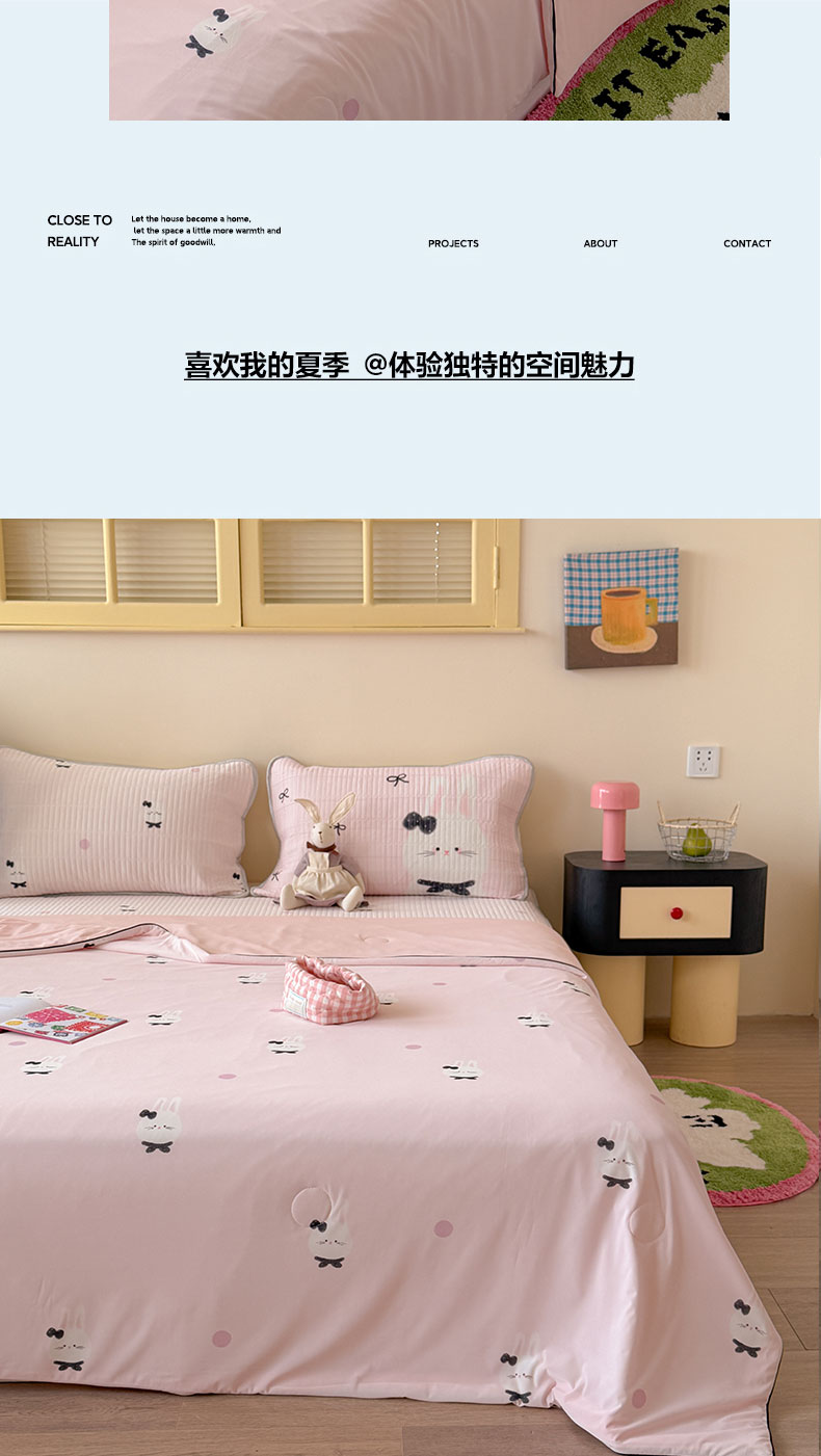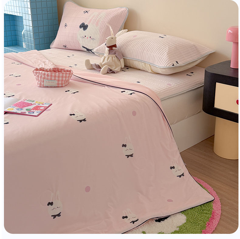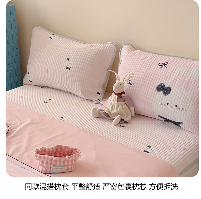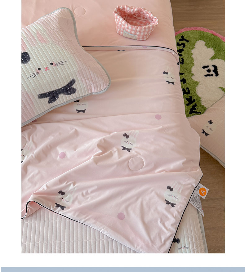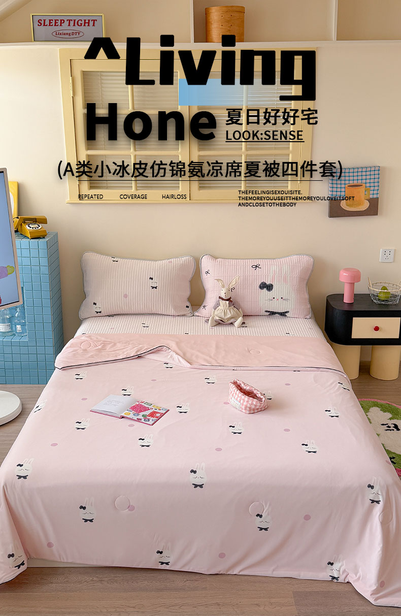 • 91家纺网 家纺一手货源 找家纺 桃子家居 2026新款A类小清新卡通数码印花混搭小冰皮夏被夏凉被空调被席子凉席四件套 小冰皮-软萌兔兔
