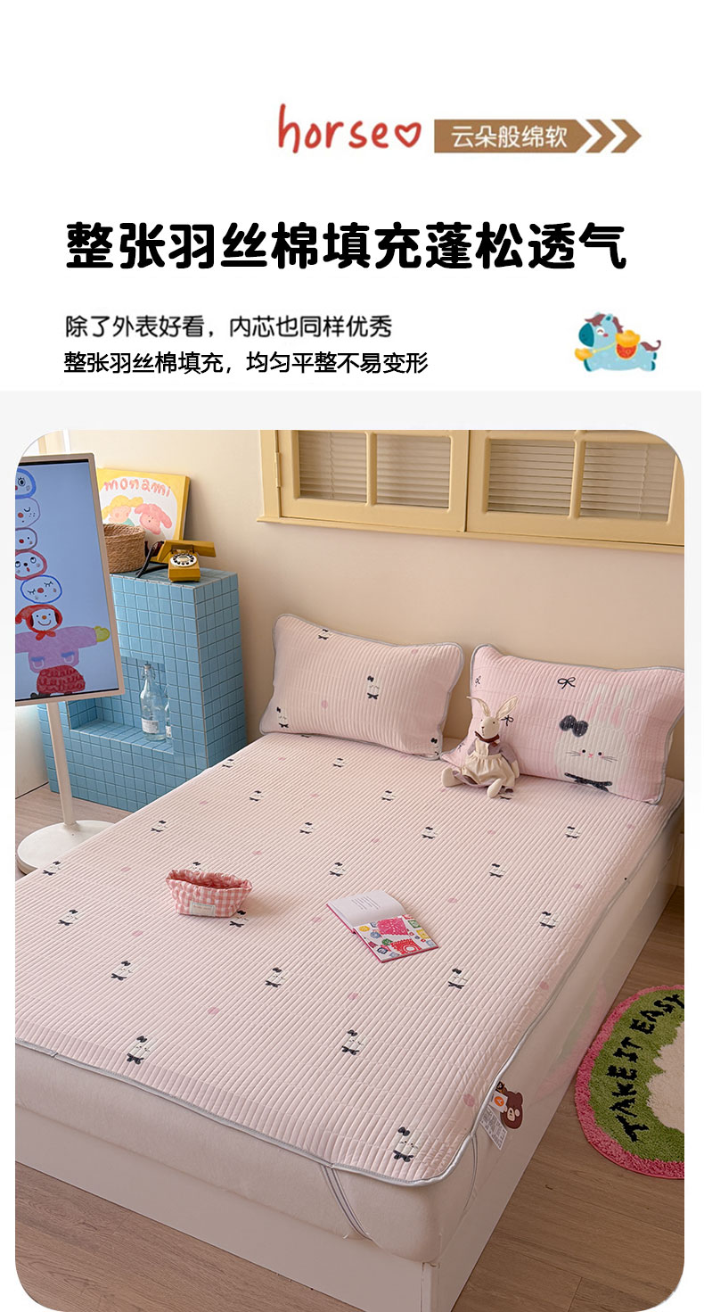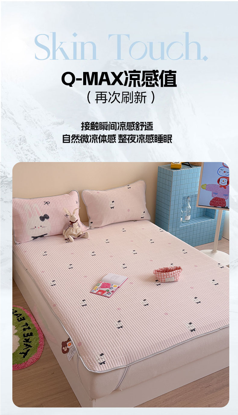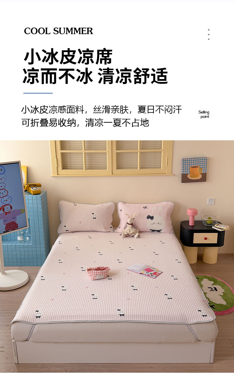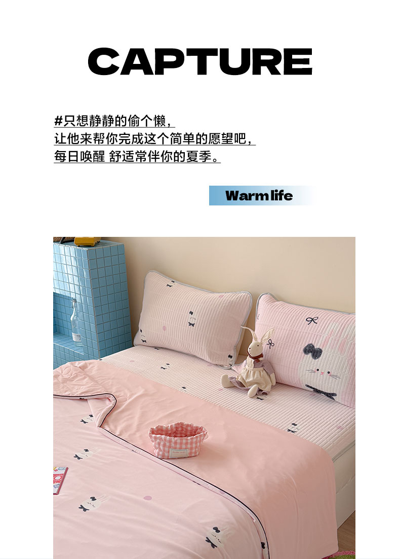 • 91家纺网 家纺一手货源 找家纺 桃子家居 2026新款A类小清新卡通数码印花混搭小冰皮夏被夏凉被空调被席子凉席四件套 小冰皮-软萌兔兔