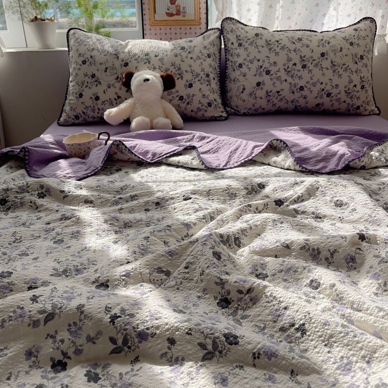(总)禾沐 2026新款泡芙纱三角针床盖夏被四件套,波点,粉色小心心,格格心,旧街星星,咖豹纹,兰爱心,描线小猫粉,描线小猫咖,浅川纹,森林描绘,田园兔,星光凯蒂,只闻花香,紫陌,KT 猫