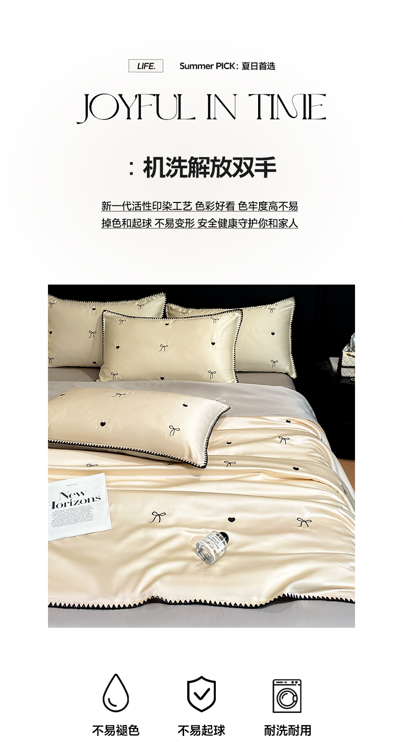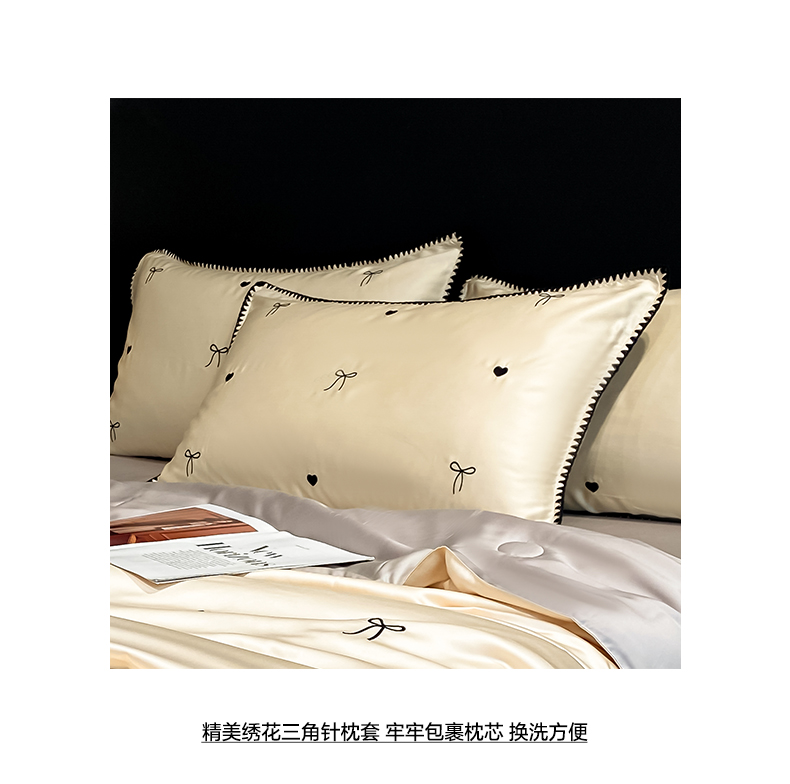 当前位置: 91家纺网 > 商品网购 > 被子 > 夏被 > 如一 2026新款水洗冰丝刺绣三角针工艺夏被四件套 爱心结-杏灰