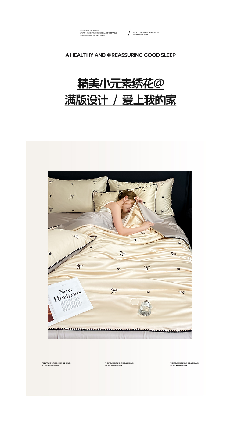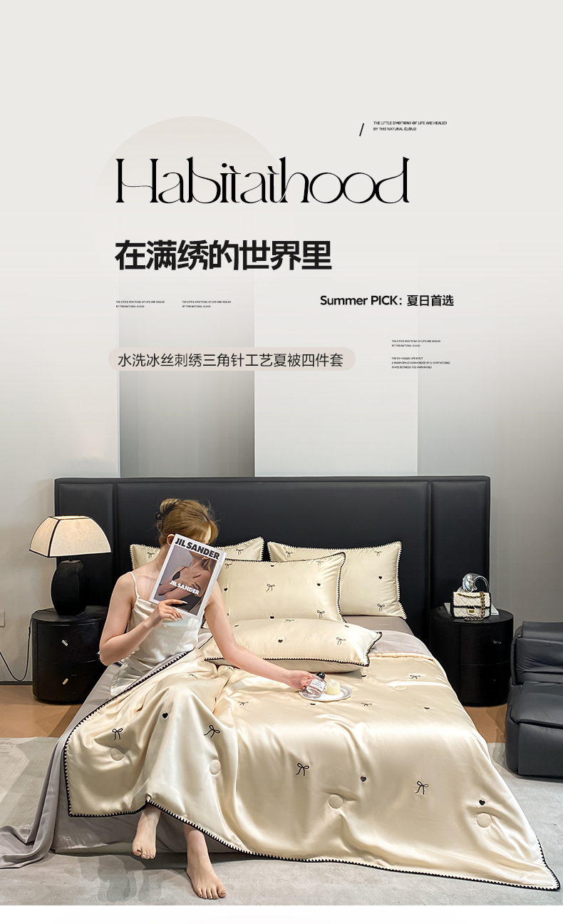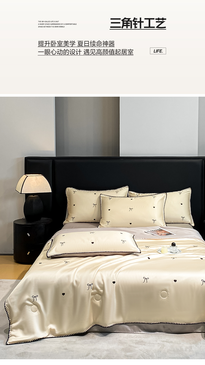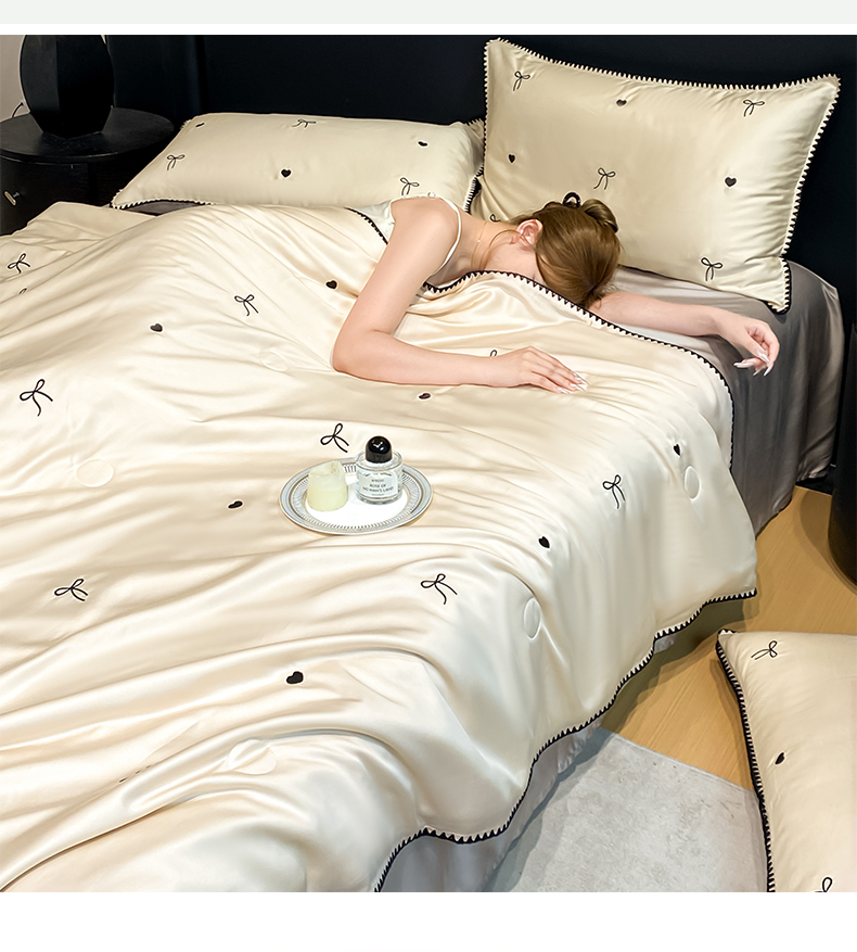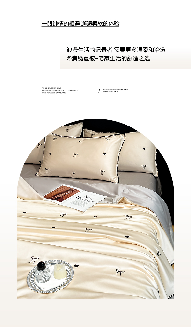 • 91家纺网 家纺一手货源 找家纺 如一 2026新款水洗冰丝刺绣三角针工艺夏被四件套 爱心结-杏灰