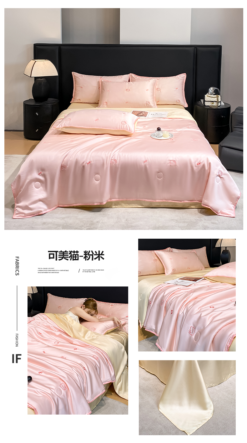 (总)如一 2026新款水洗冰丝刺绣三角针工艺夏被四件套,可美猫-白粉,爱心结-白粉,爱心结-白蓝,爱心结-杏灰,可美猫-粉黑,可美猫-粉米,腊肠犬-白蓝,腊肠犬-蓝灰,腊肠犬-杏灰,甜荔枝-白粉,甜荔枝-白蓝,甜荔枝-粉红,小马驹-绿米,小马驹-杏灰
