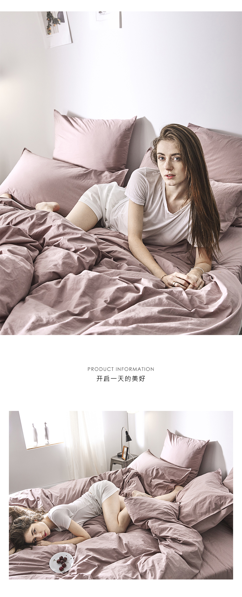 (总)涞澳家纺 2026新款全棉纯棉水洗棉纯色花边款四件套-珠若,珠若-米白,珠若-浅灰,珠若-浅绿,珠若-浅玉