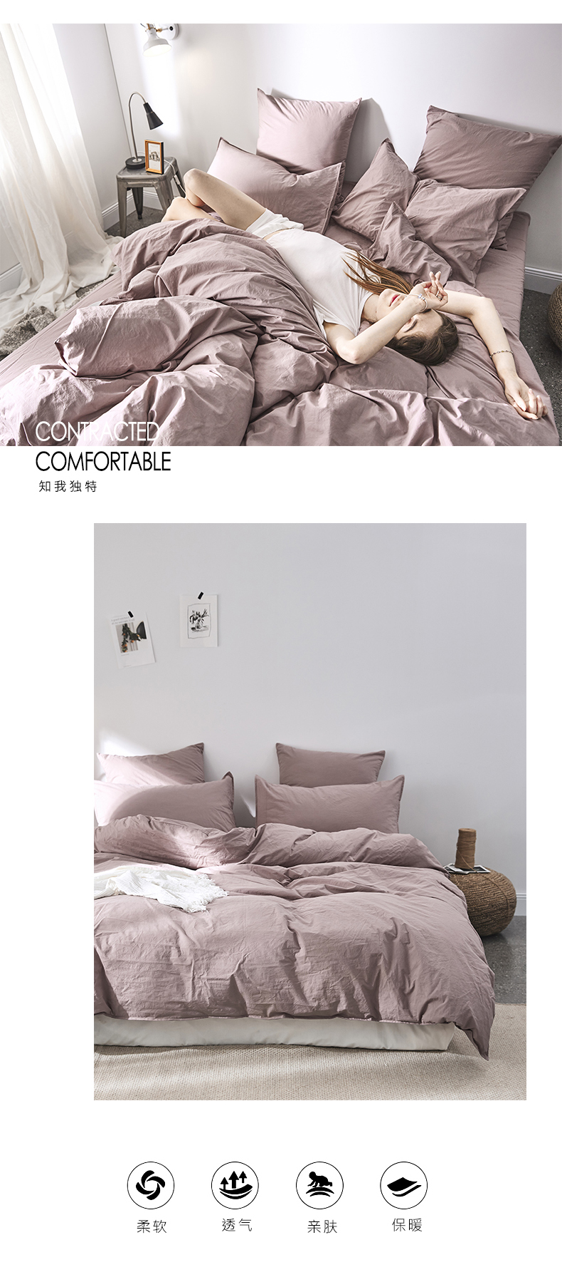 商品名称:涞澳家纺(新品)60水洗棉四件套 遥紫