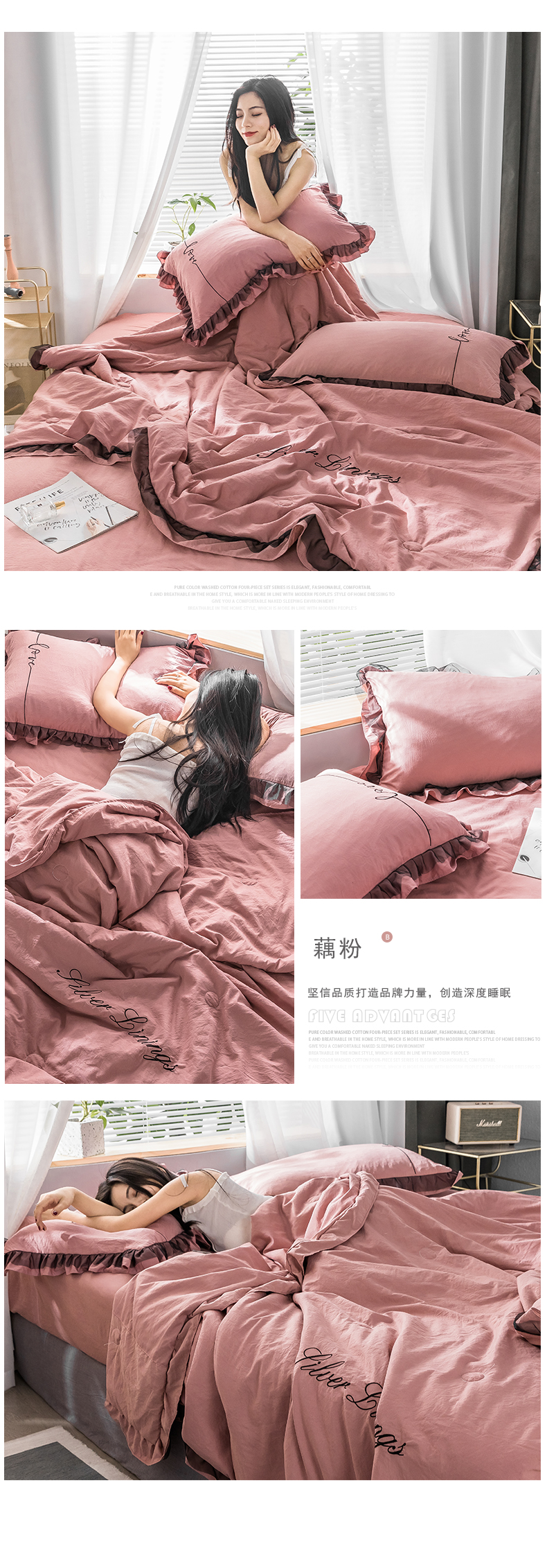 (总)AB家纺 2023新款全棉水洗棉四件套-蔻朵系列,蔻朵-淡奶油微微粉,蔻朵-丁香紫,蔻朵-晴空蓝,蔻朵-微微粉,蔻朵-象牙黄,蔻朵-小森林