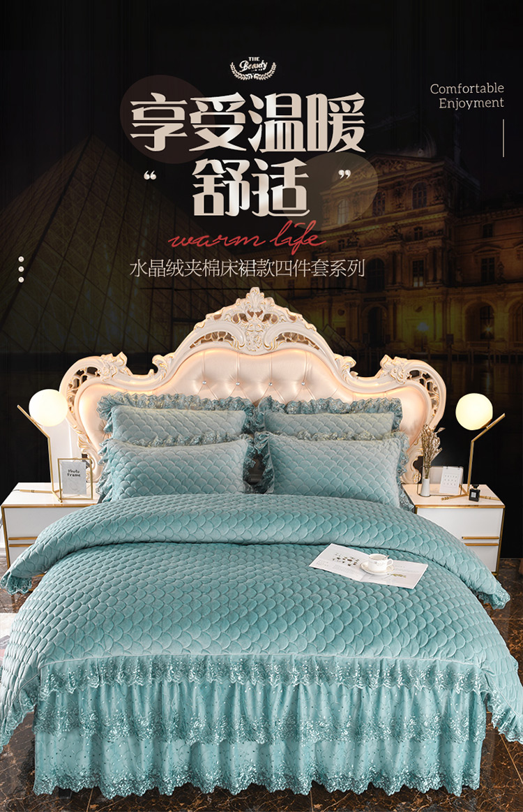 (总)恒爱 2022秋冬水晶绒翩翩花舞夹棉床裙四件套,大红色,豆沙红,橄榄绿,公主粉,桔色,咖啡色,孔雀绿,拉菲红,罗兰紫,玫红色,美人玉,米白色,米驼色,抹茶绿,浅灰色,紫色