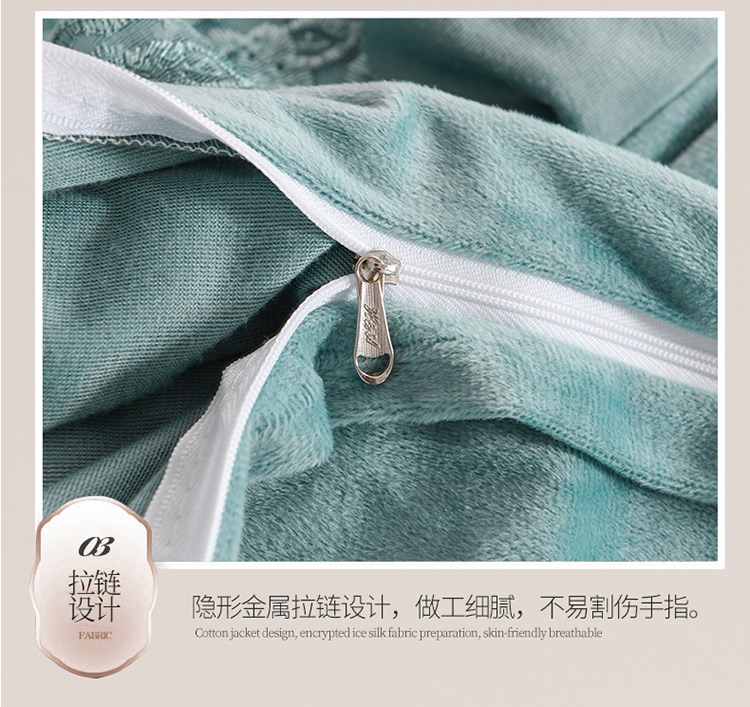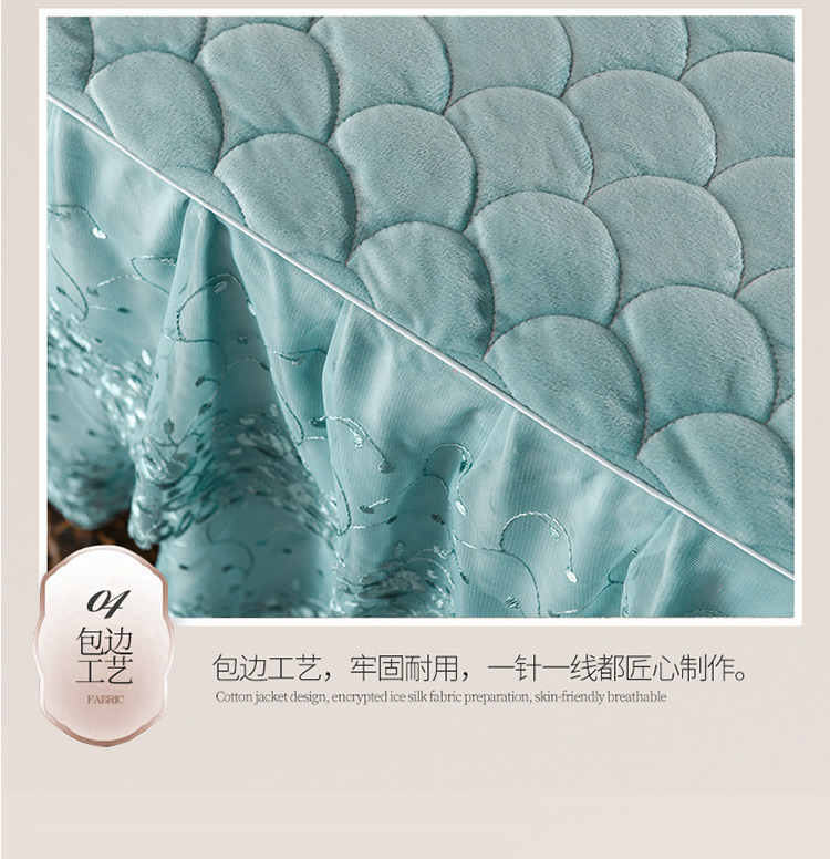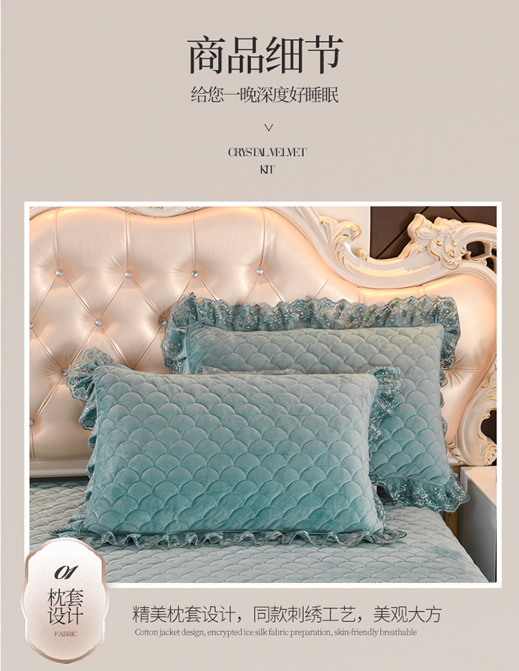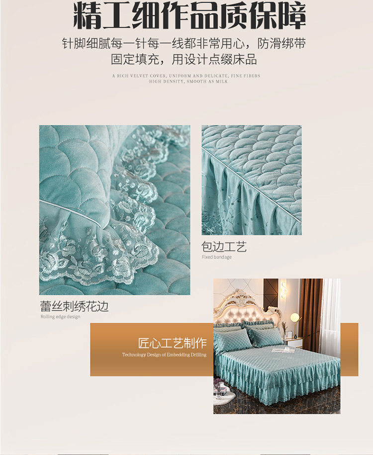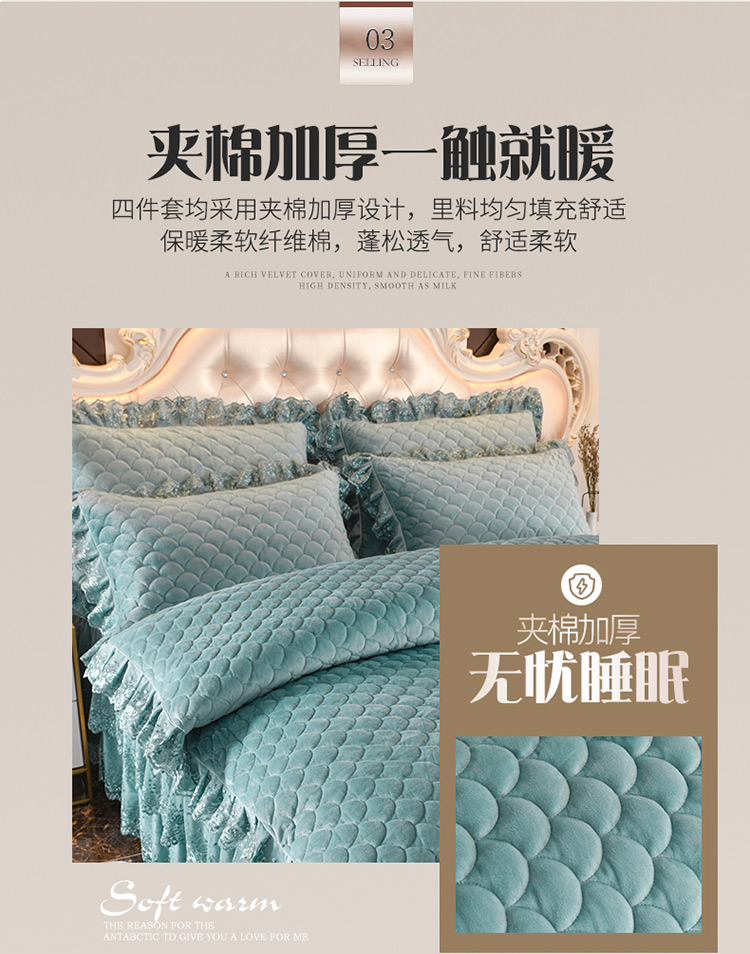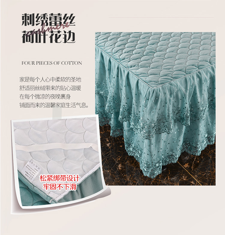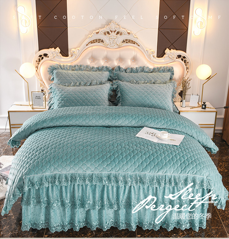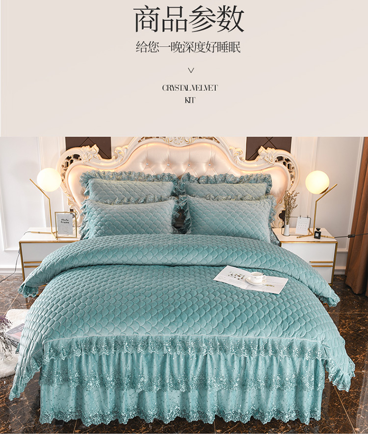商品名称:恒爱家纺2021新款水晶绒夹棉蕾丝四件套 翩翩花舞-孔雀绿