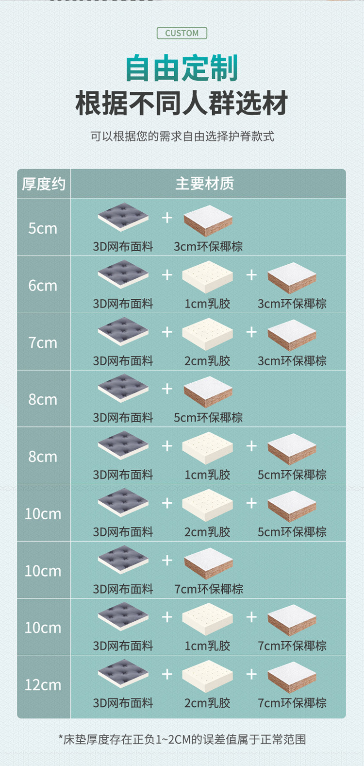 (总)时奥家纺 2025新款宝宝绒环保椰棕床垫,3分棕(5cm),3分棕+1分乳胶(5cm),3分棕+2分乳胶(6cm),3分棕+3分乳胶(7cm),5分棕(7cm),5分棕+1分乳胶(7cm),5分棕+2分乳胶(8cm),5分棕+3分乳胶(9cm),7分棕(8cm),7分棕+1分乳胶(9cm),7分棕+2分乳胶(10cm),7分棕+3分乳胶(11cm),10分棕(11cm),10分棕+1分乳胶(12cm),10分棕+2分乳胶(13cm),10分棕+3分乳胶(15cm)