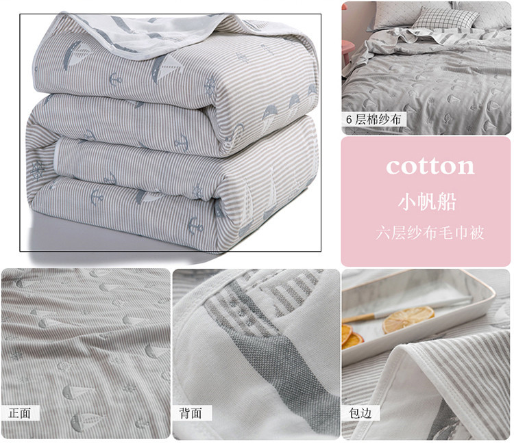 商品名称:朴尔家纺 六层全棉纱布毛巾被 小帆船