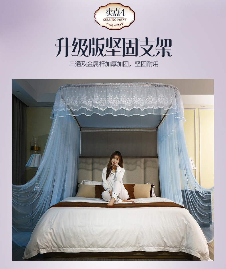 (总)飞轮海蚊帐 新款双层方顶宫廷落地蚊帐-LX91,双层嫩粉,双层香槟,双拼蓝绿,双拼清水蓝