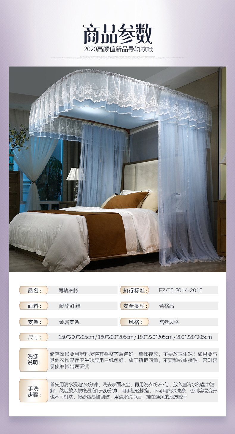 飞轮海 2023新款夏季防蚊导轨D99蚊帐 D99-清水蓝