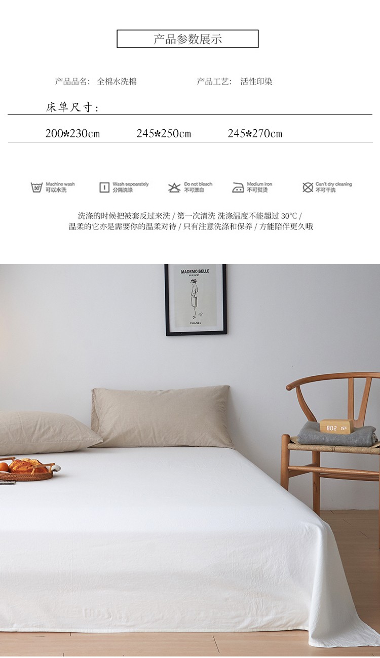 商品名称:MR.PIG全棉水洗棉床单单件简约纯色纯棉学生宿舍单双人被单