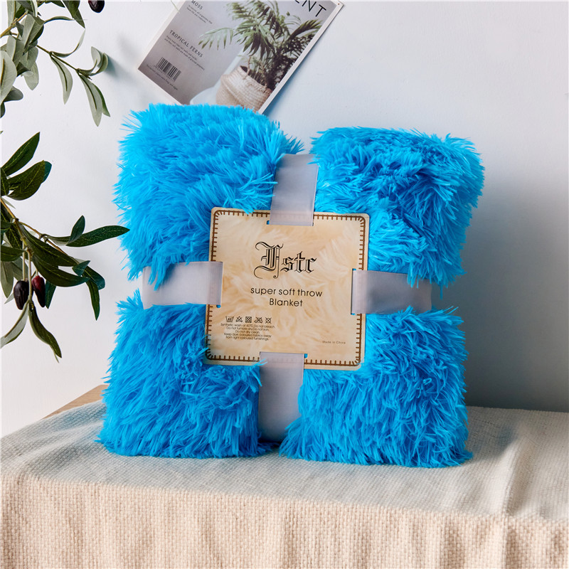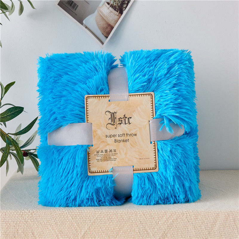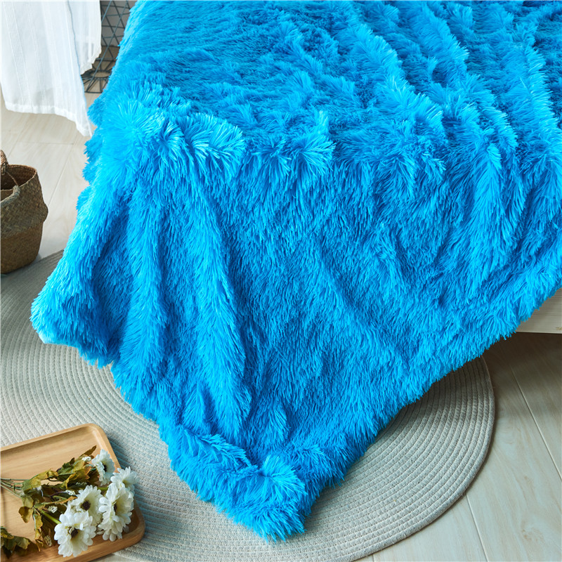 品尚嘉 2025水貂绒毛毯长毛绒法莱绒双层跨境外贸毯子 蓝色