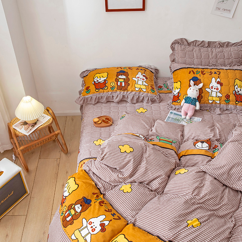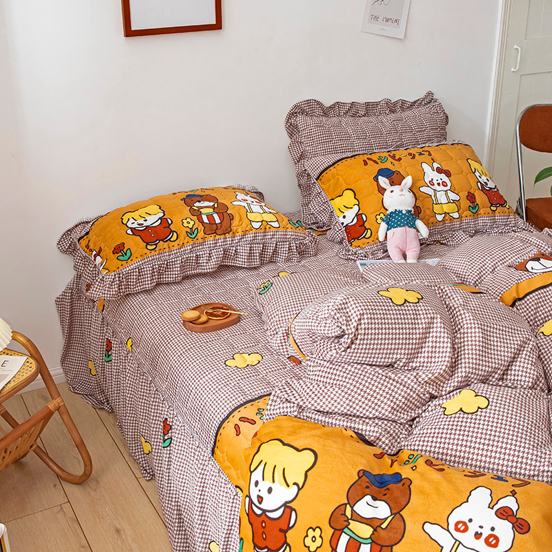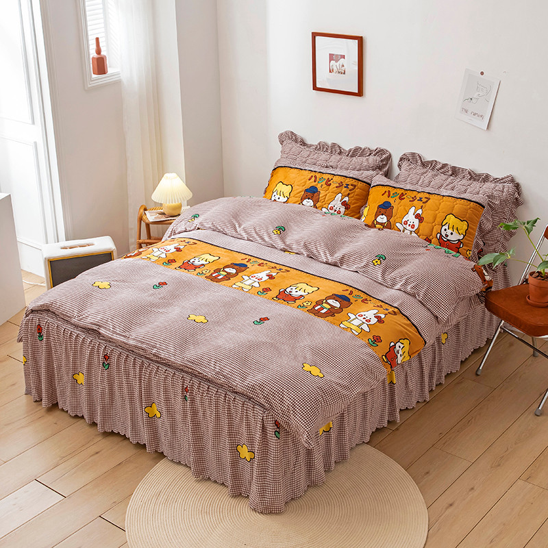 纽缦 2020新款绒夹棉床裙四件套 可可佳人浅咖