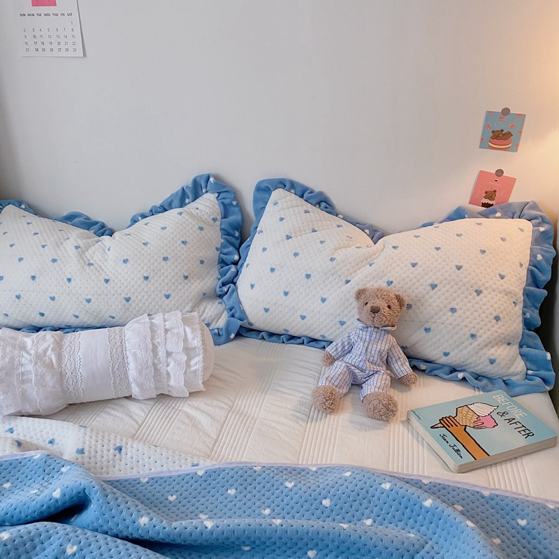 商品名称:星期八 2020新款奶油色花边牛奶绒床盖 爱心蓝