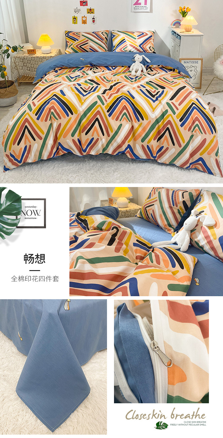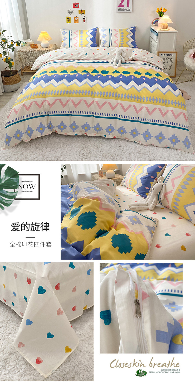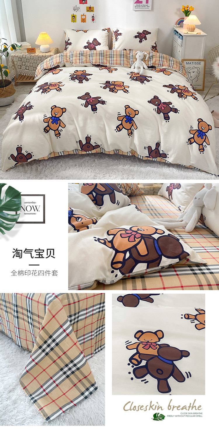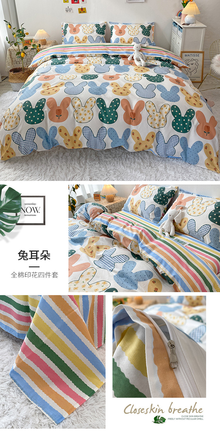 (总)珺柔 2023新款13070全棉四件套-第3批,宝宝兔,豹纹粉,北欧之春,都尚,风信子,浪漫花香,菱格熊,领结兔,绿光,玫瑰星球,梦的旋律-灰,梦的旋律-蓝,梦的旋律-绿,条纹爱心,兔时光,夏洛克,线条熊兔,小兔仙,永恒,油墨画