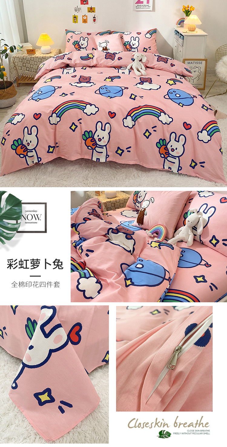(总)珺柔家纺 2023新款13372全棉印花四件套,朵拉花园,粉色郁金香 ,可爱兔,迷你兔,太阳花,顽皮狗,喜结连理,薰衣草