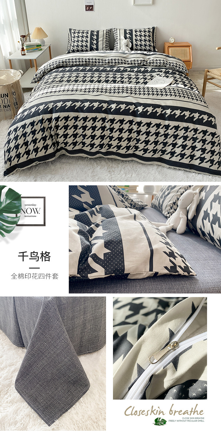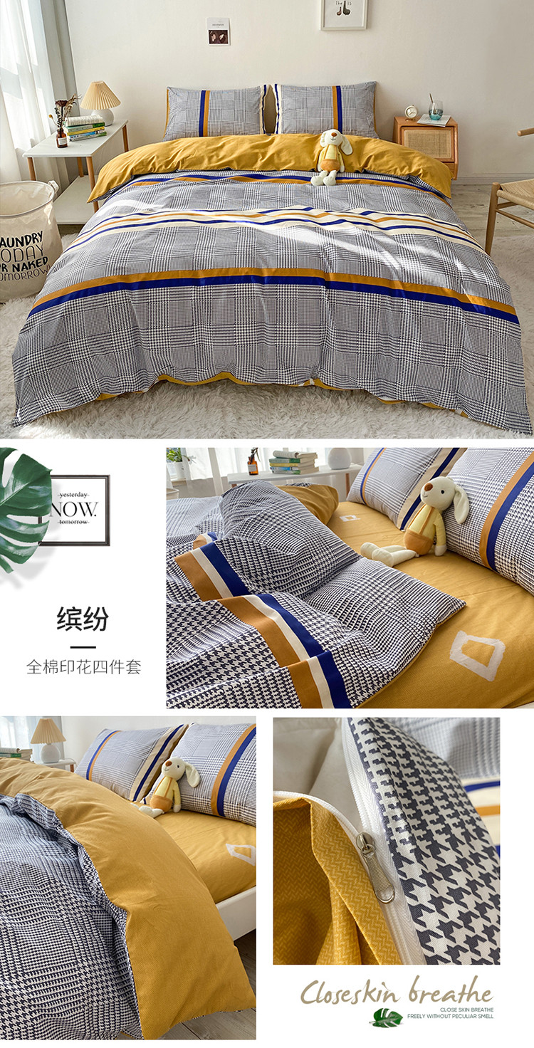 (总)2023新款40支纱全棉13070锁边工艺款四件套系列,格子爱心,嘉兰,咖条,朗尼,小兔兔,星星兔