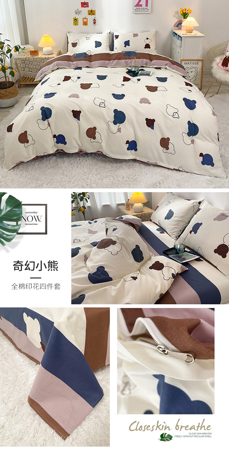 (总)珺柔家纺 2025新款全棉磨毛绣花四件套,风车小熊,海盐雪纳瑞,黑白熊猫,咖啡店小狗,腊肠三小只,萌神小喵,纽扣小熊,苹果小熊-咖,苹果小熊-蓝,夏日时光,小恶魔
