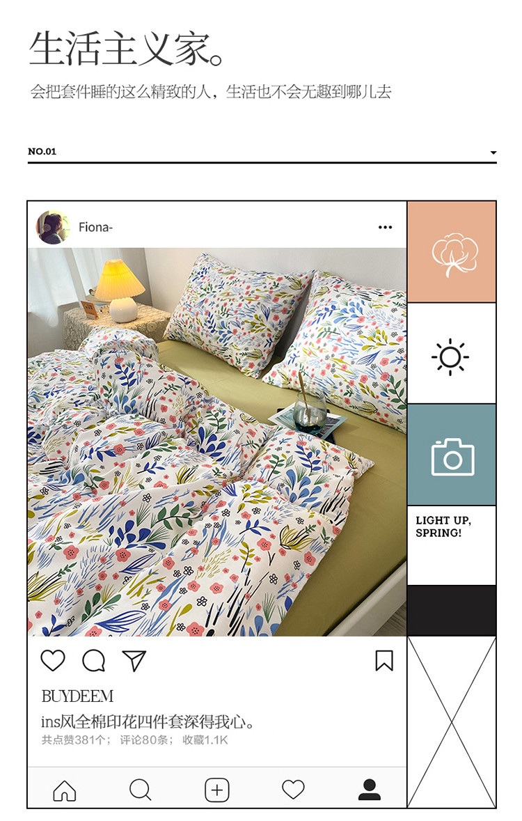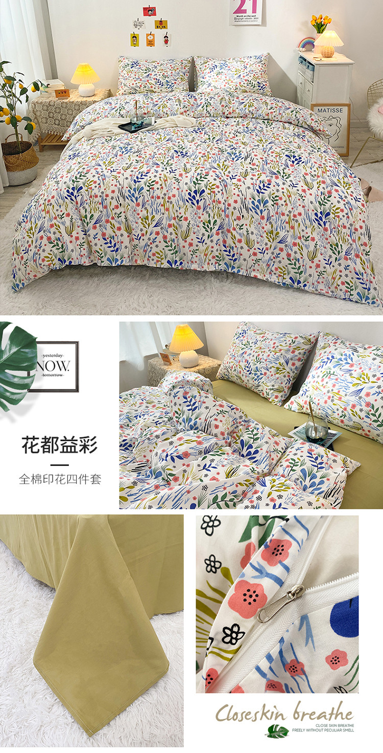珺柔家纺 2021新款全棉印花四件套 花都益彩
