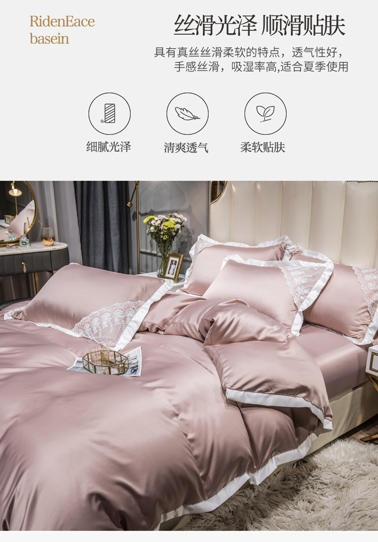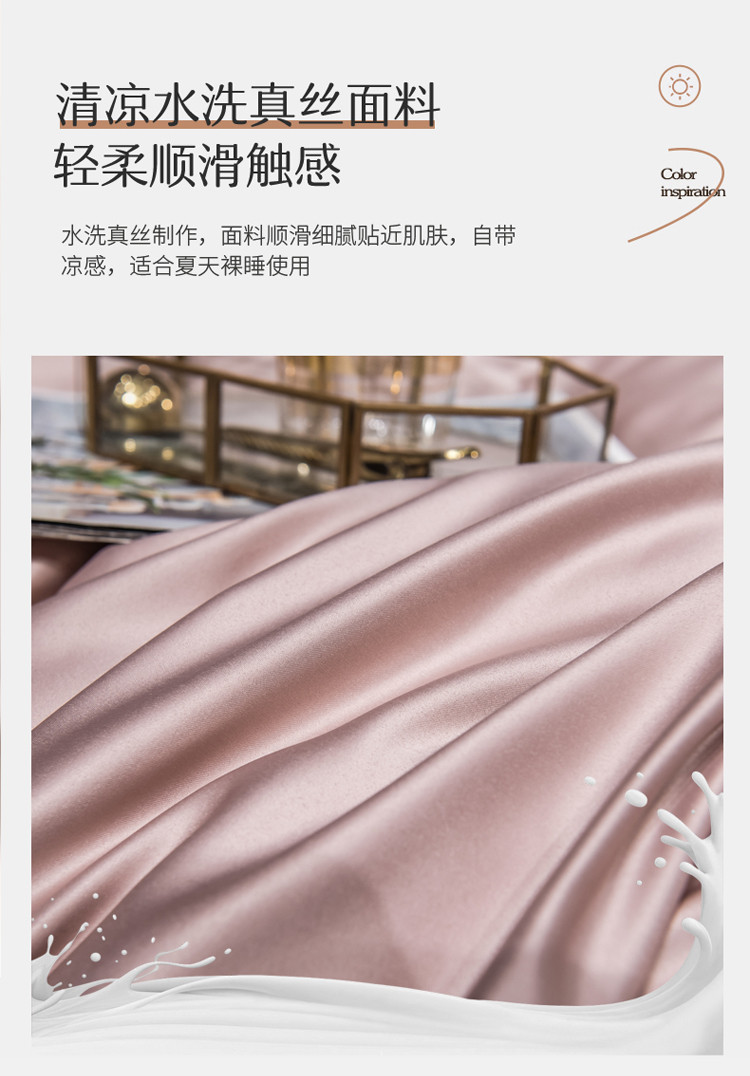 (总)绒世界 2025新款四季款高端贡缎条纹水洗真丝四件套,白茶绿,景泰蓝,香槟金,香芋粉,象牙白