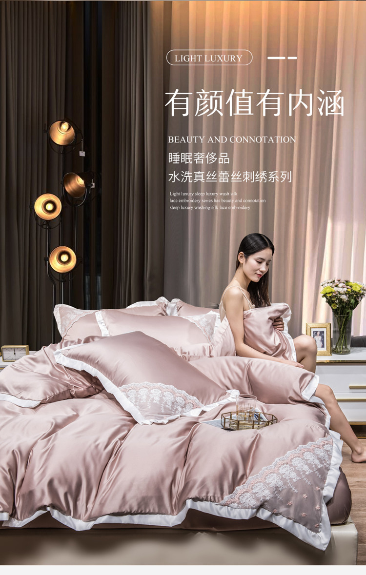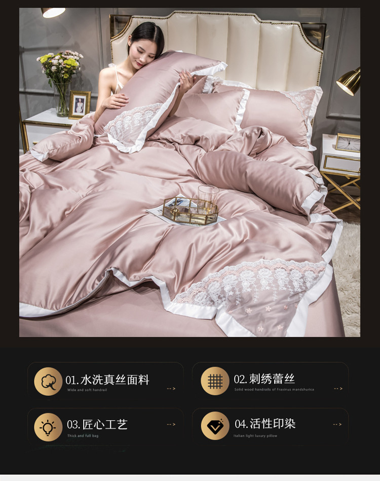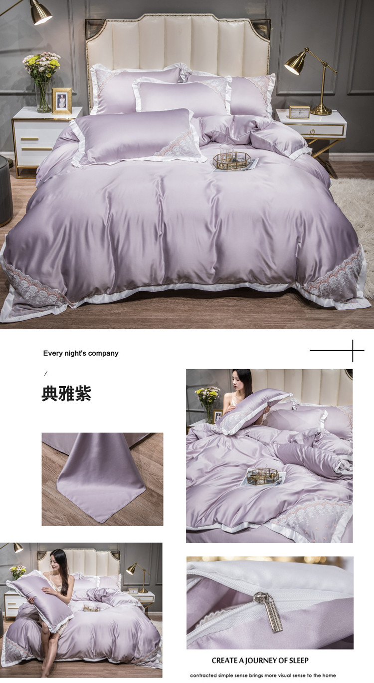 绒世界 2021新款水洗真丝公主四件套 典雅紫
