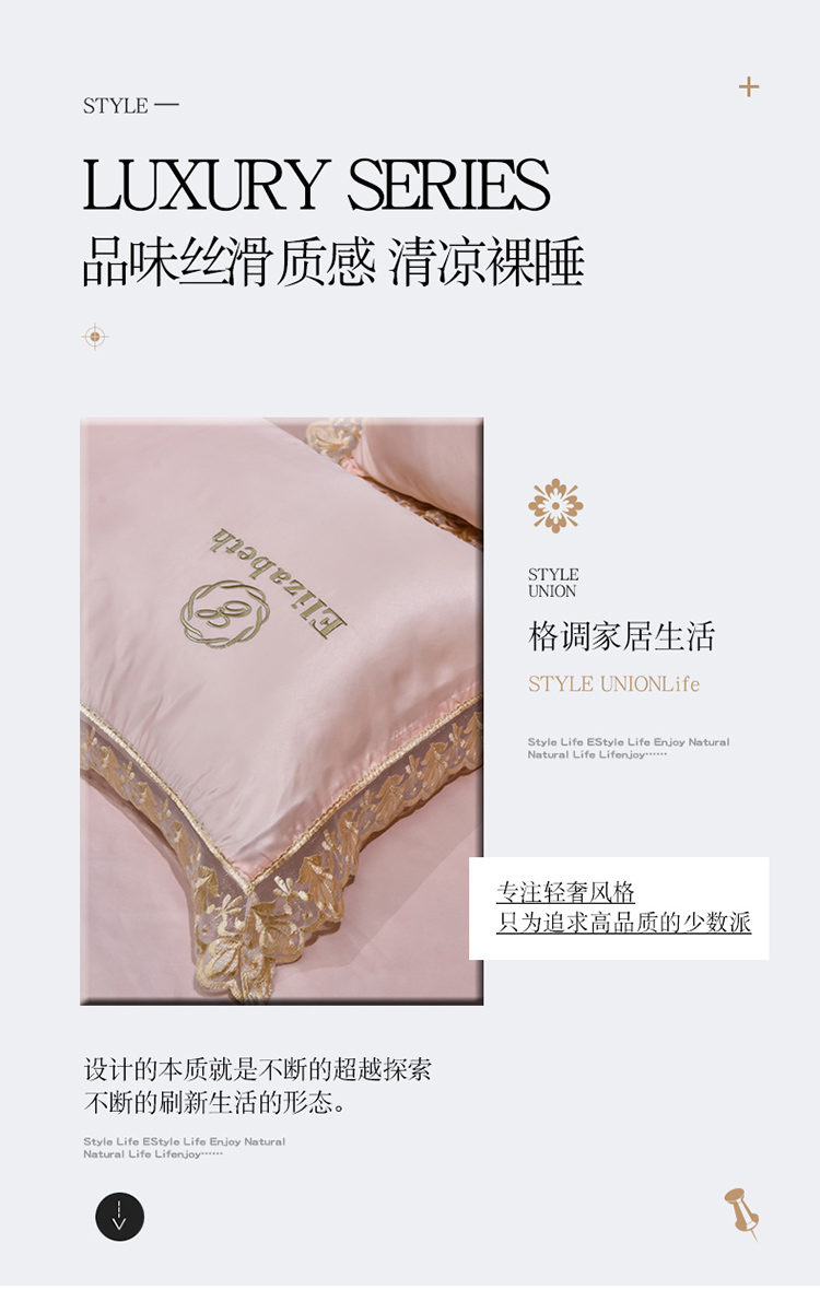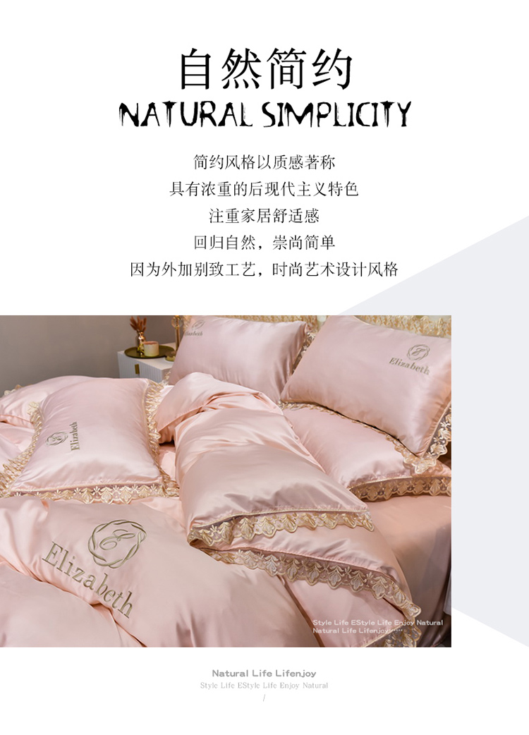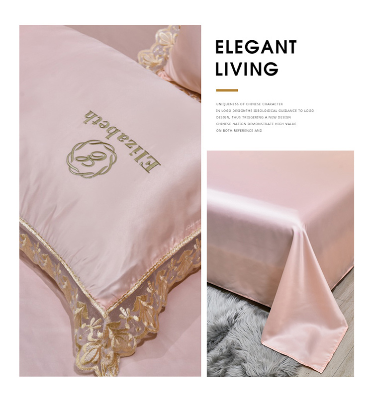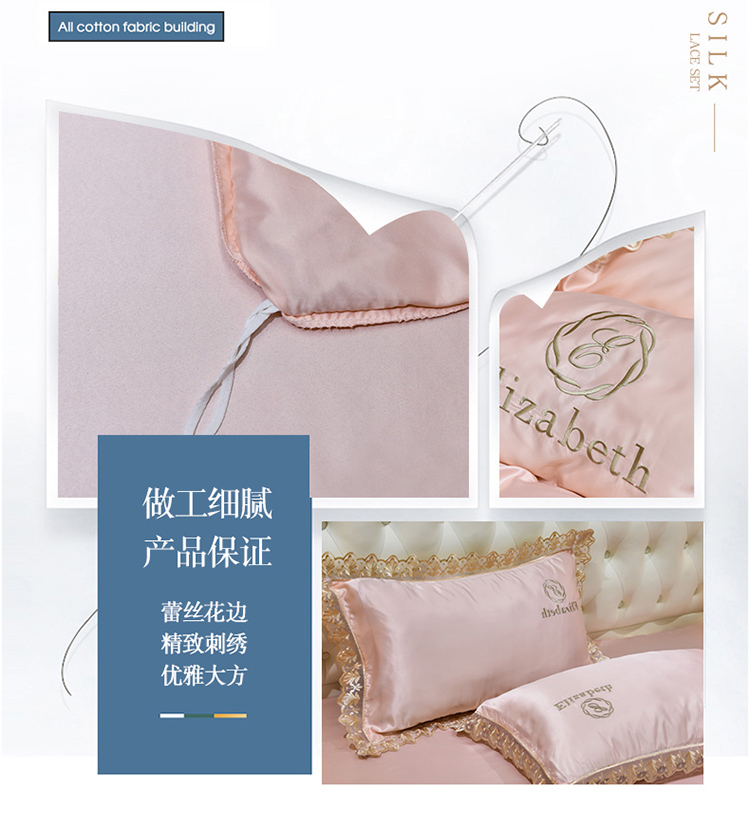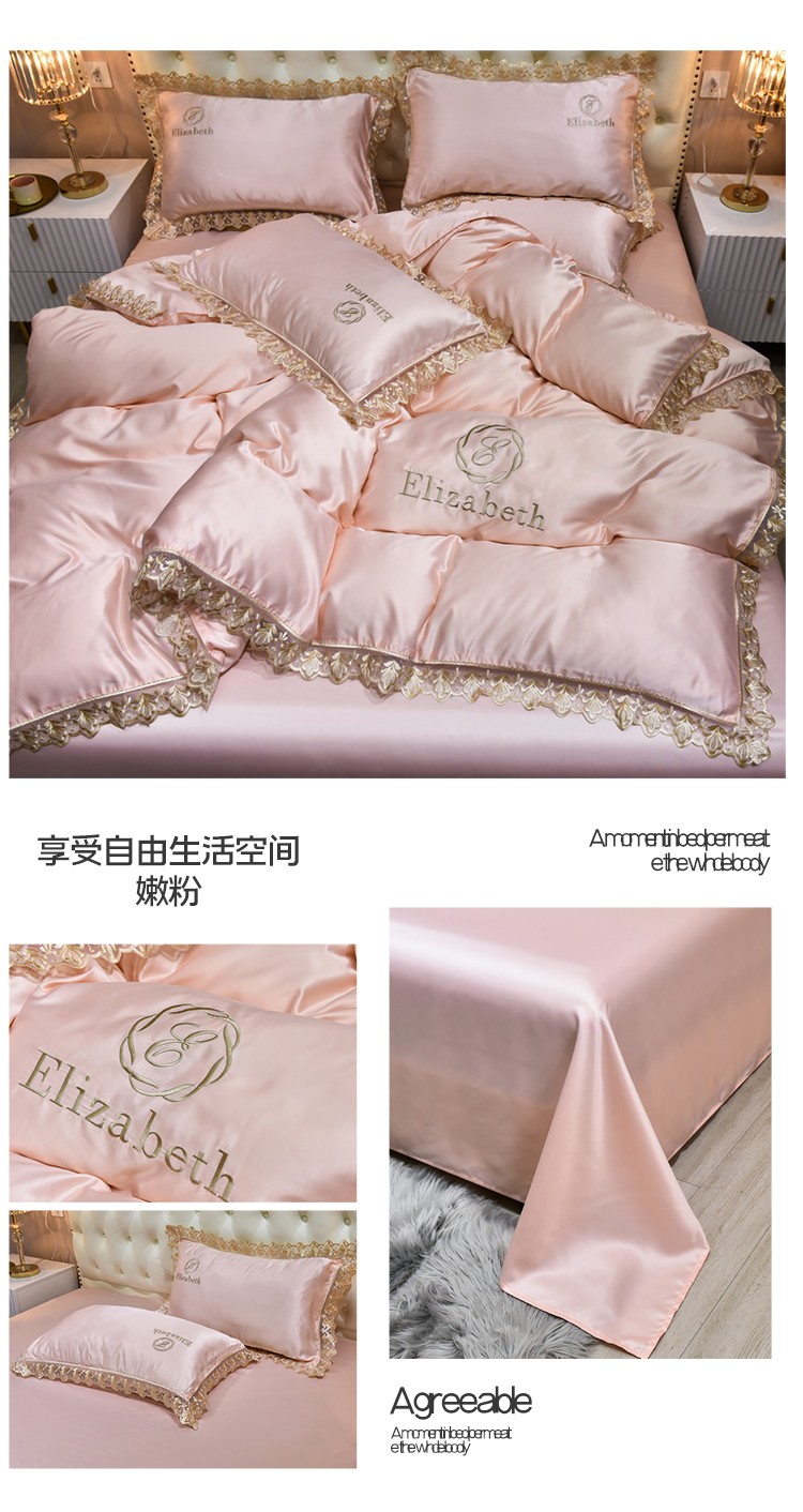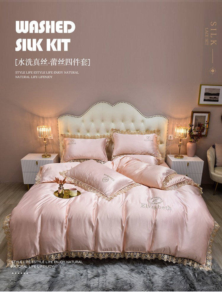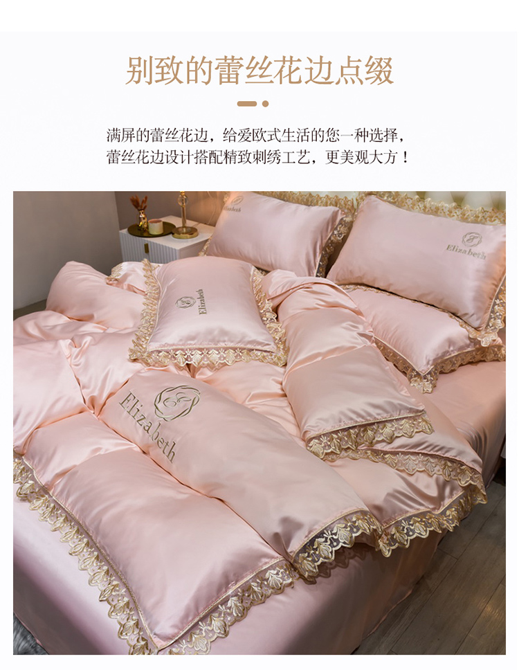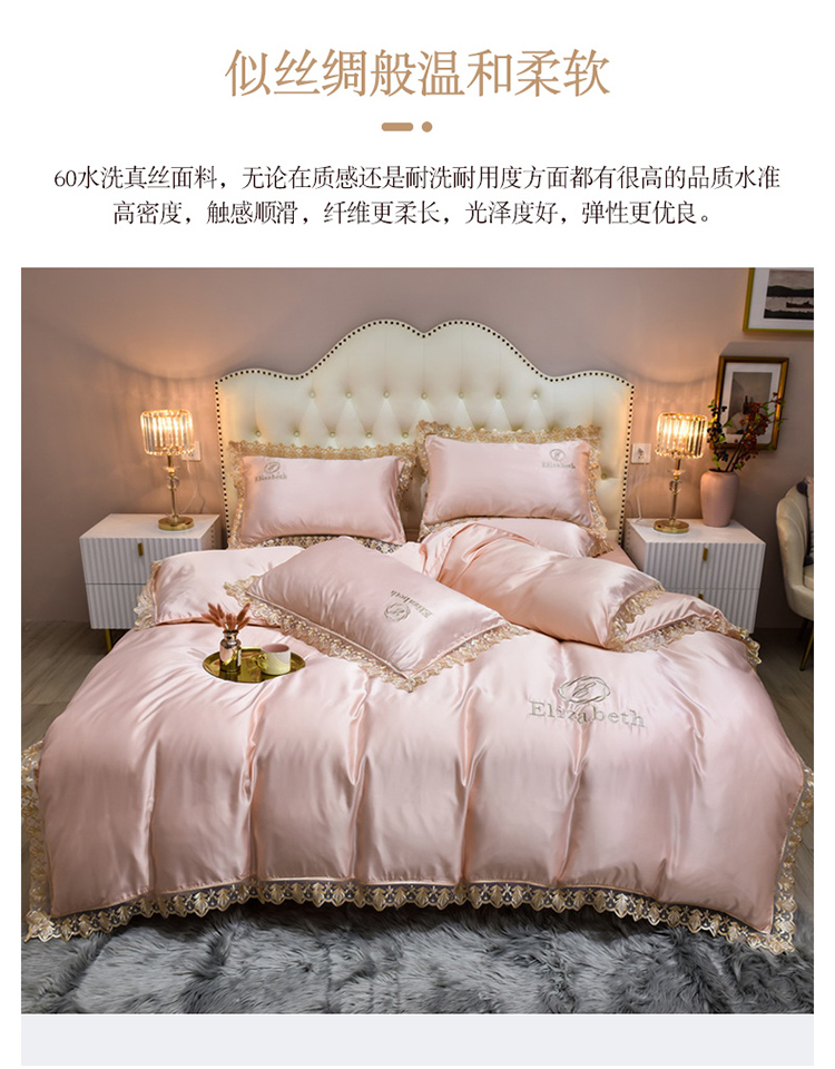 米奈家居 2021新款水洗真丝蕾丝花边爱琳四件套 嫩粉