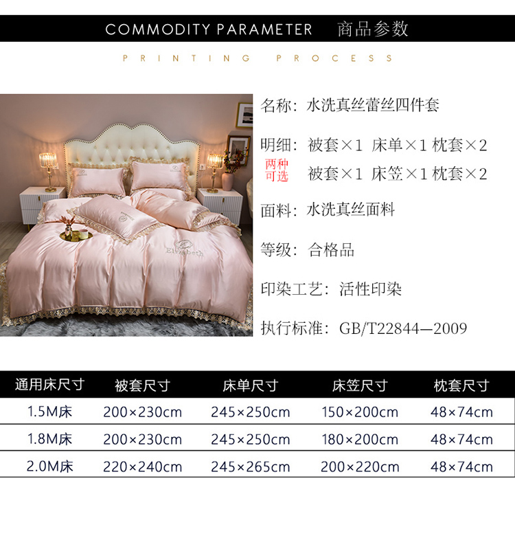 商品名称:米奈家居 2021新款水洗真丝蕾丝花边爱琳四件套 嫩粉