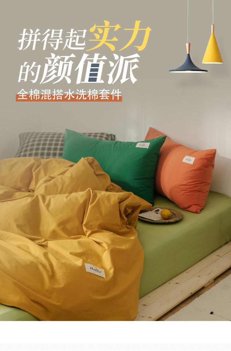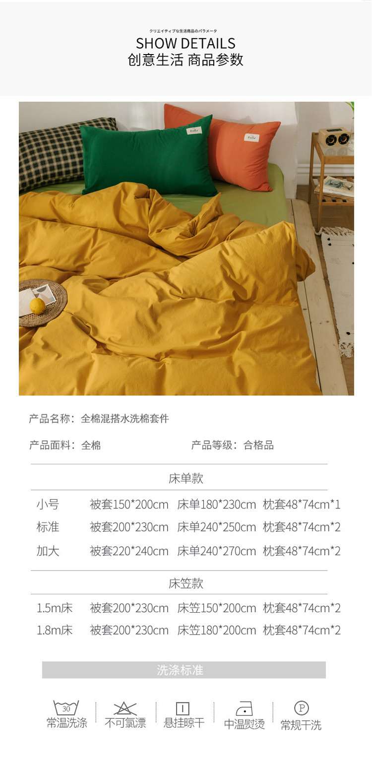 (总)雅居纺家纺 2022新款全棉水洗棉四件套,Ins粉蓝,ins浅蓝,白+墨子绿,白+绅士红,低调灰,低调灰绅士灰,豆绿+米黄,复古绿卡其,果绿绅士黄,焦糖咖啡,咖啡+卡其,米黄,米黄+明黄,米黄咖啡,米黄水绿,墨子绿,墨子绿卡其,墨子绿绅士黄,牛仔蓝低调灰,浅蓝深灰,清雅蓝绅士灰,绅士红卡其,绅士黄卡其,绅士灰,新蓝米黄