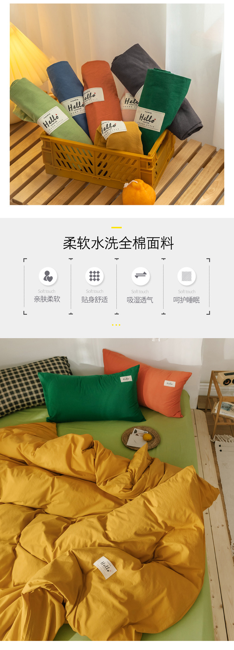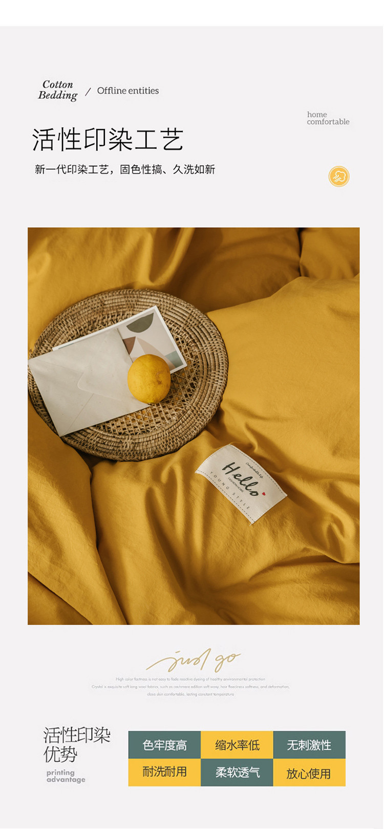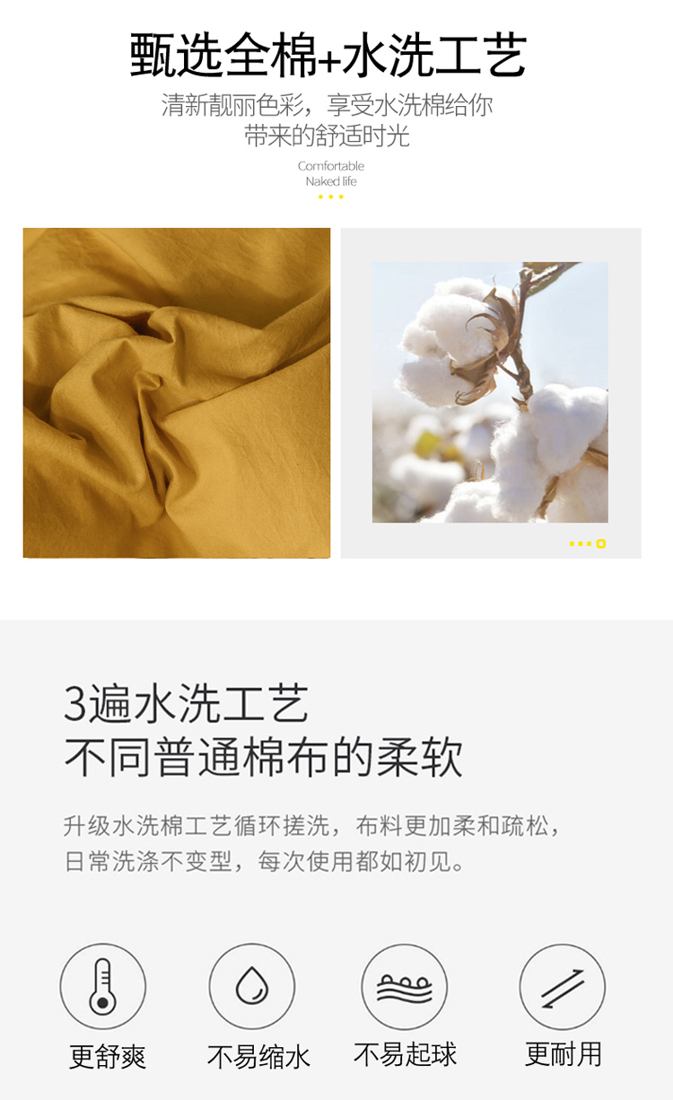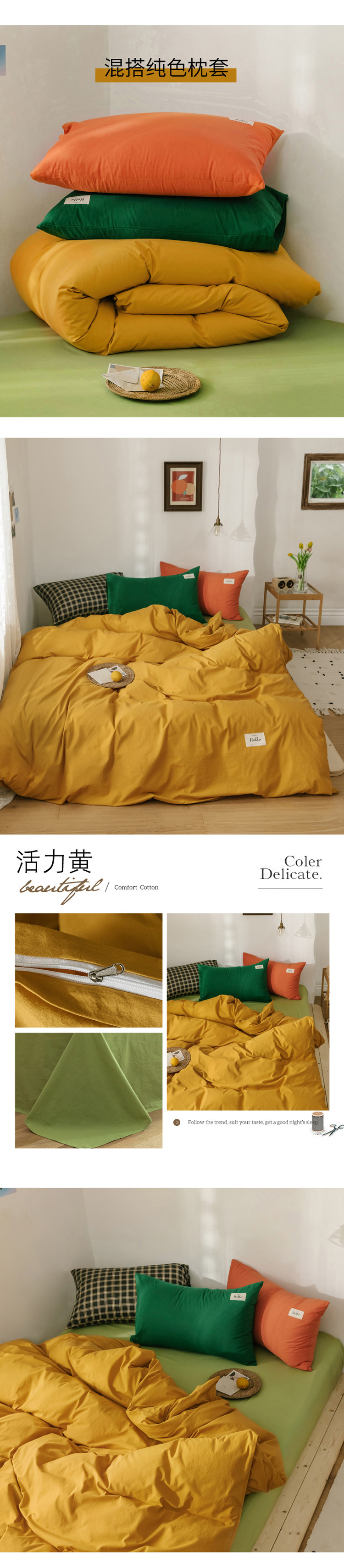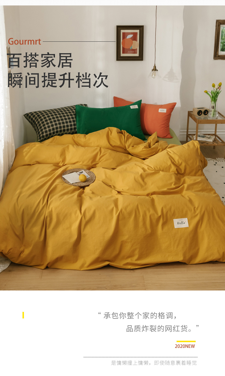 商品名称:雅居纺 2022新款全棉混搭水洗棉四件套 活力黄