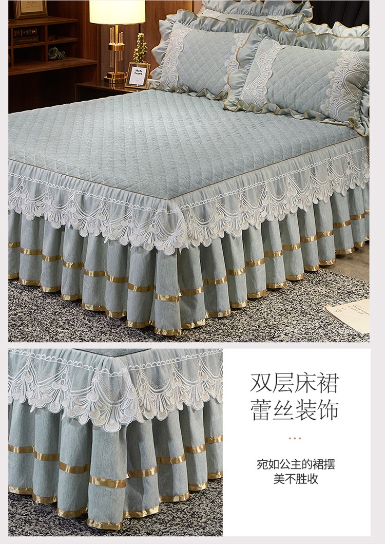 (总)网红馆(ck家纺) 2025新款色织提花牛奶绒床裙四件套-洛丽塔系列,洛丽塔-豆沙,洛丽塔-蓝色,洛丽塔-米色