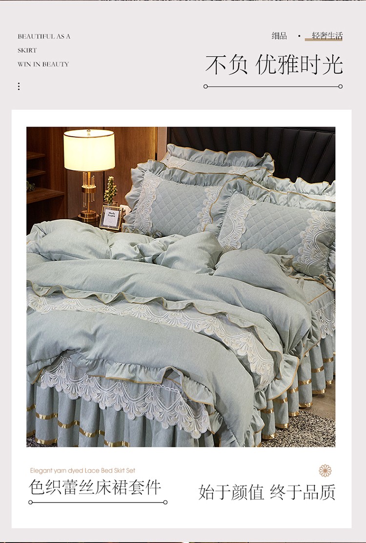 商品名称:网红馆 2025新款芭莎风情床裙四件套 石青色