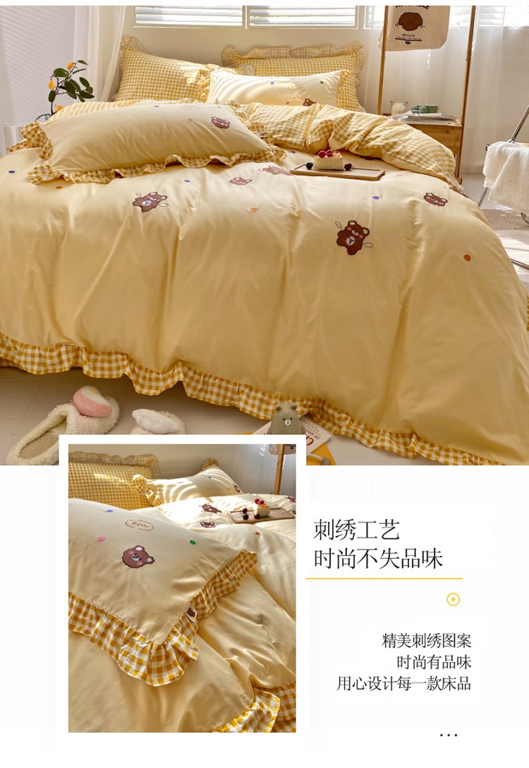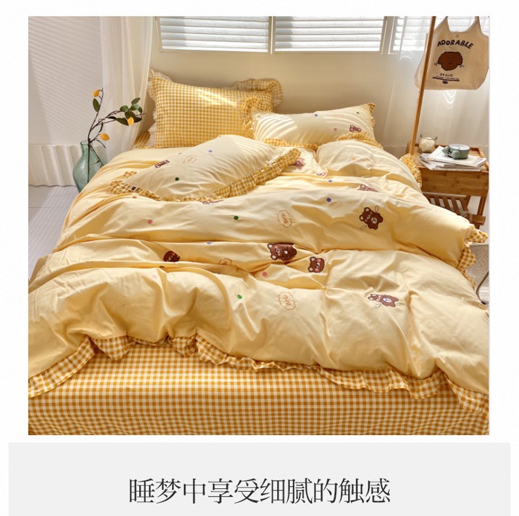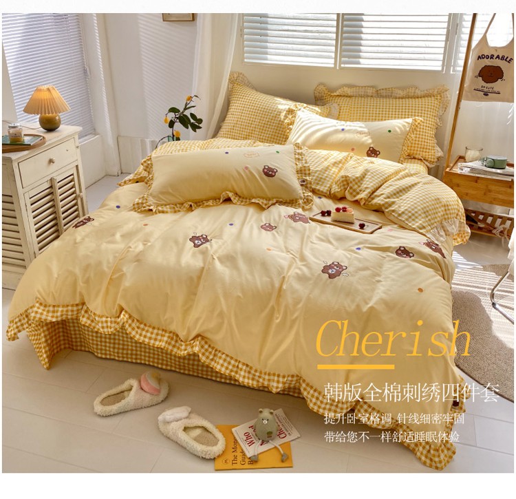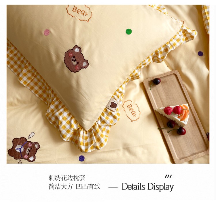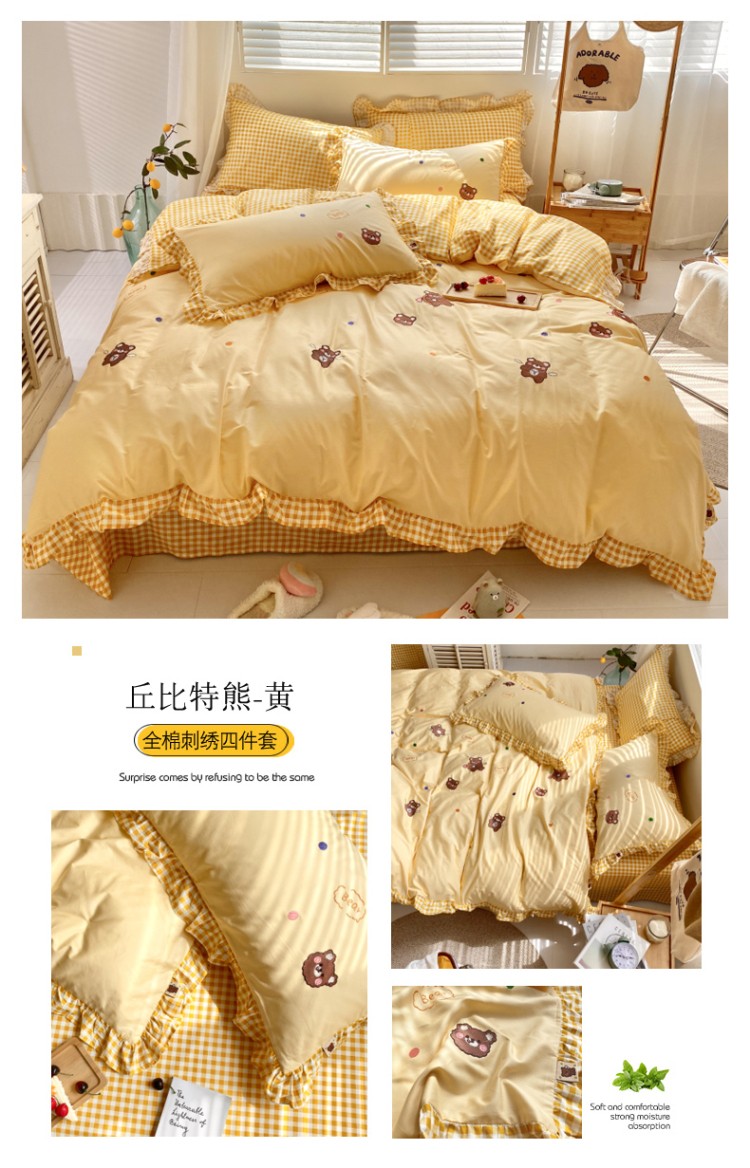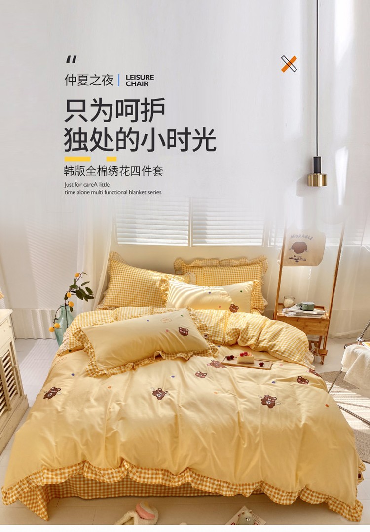 商品名称:寐居 2021新款纯棉刺绣四件套 丘比特熊-黄