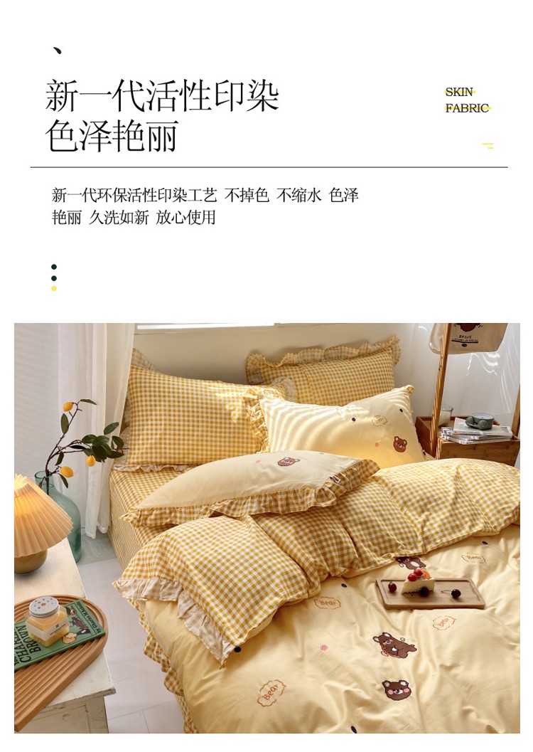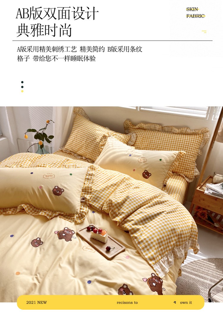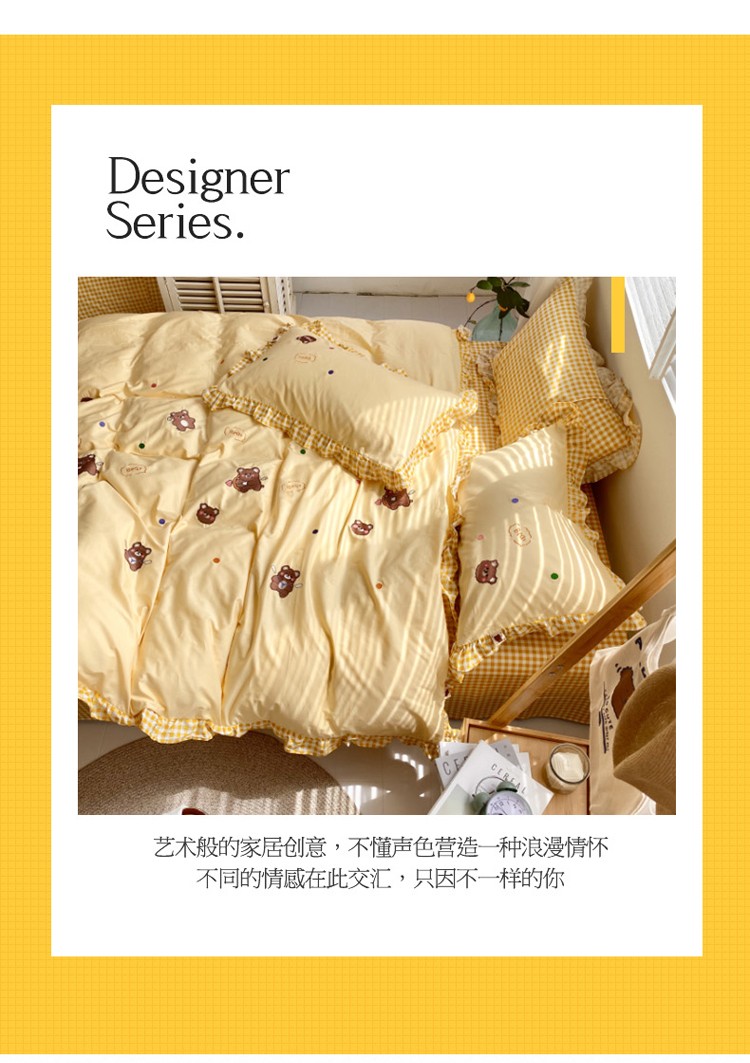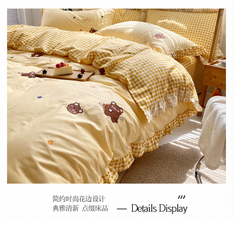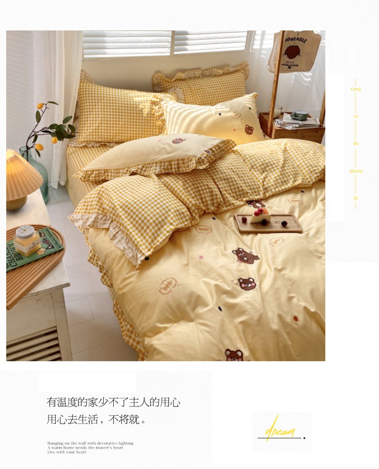 商品名称:寐居 2021新款纯棉刺绣四件套 丘比特熊-黄