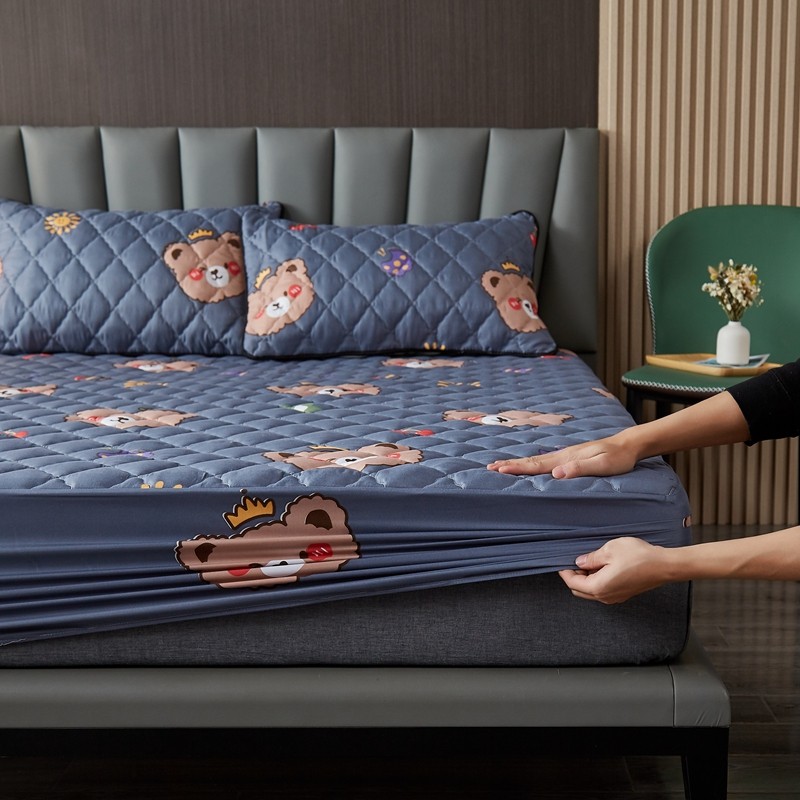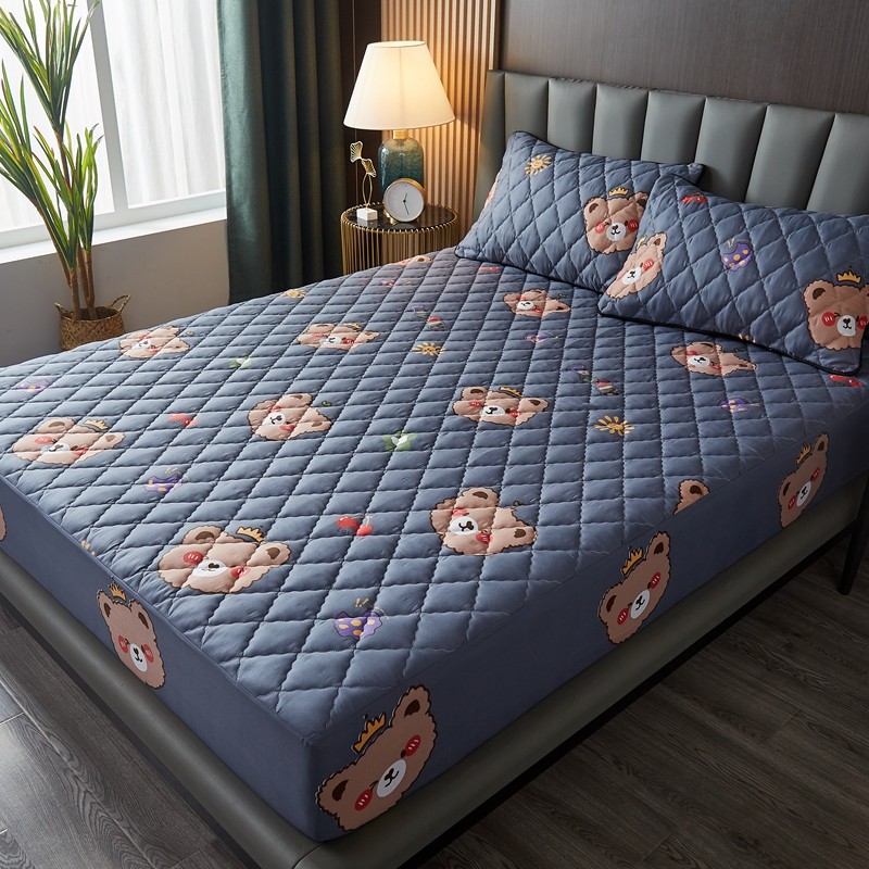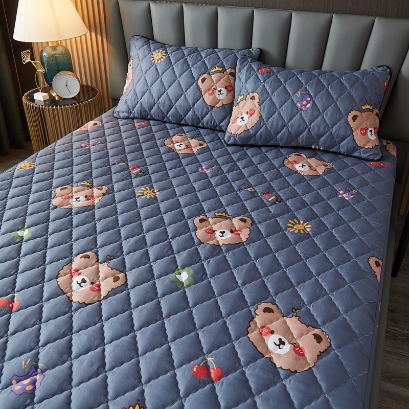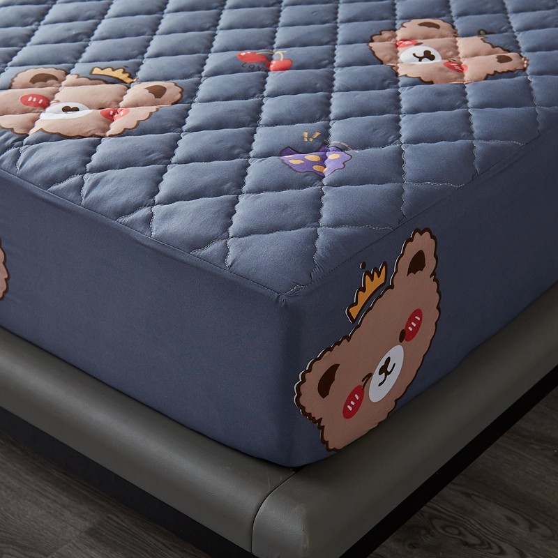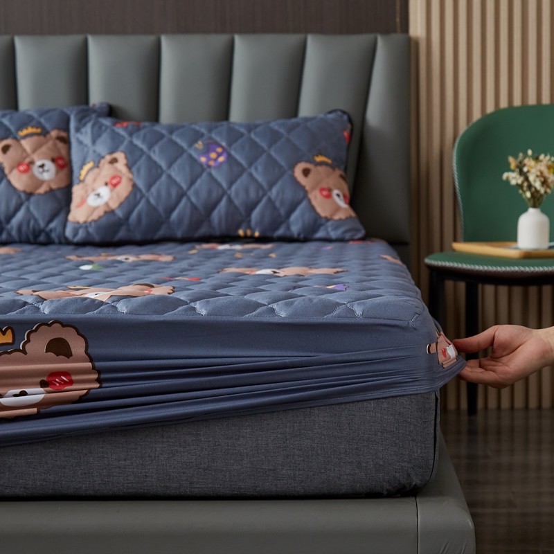 商品名称:花言狐语 2025新款水洗棉防水隔尿夹棉床笠 可爱小熊-灰
