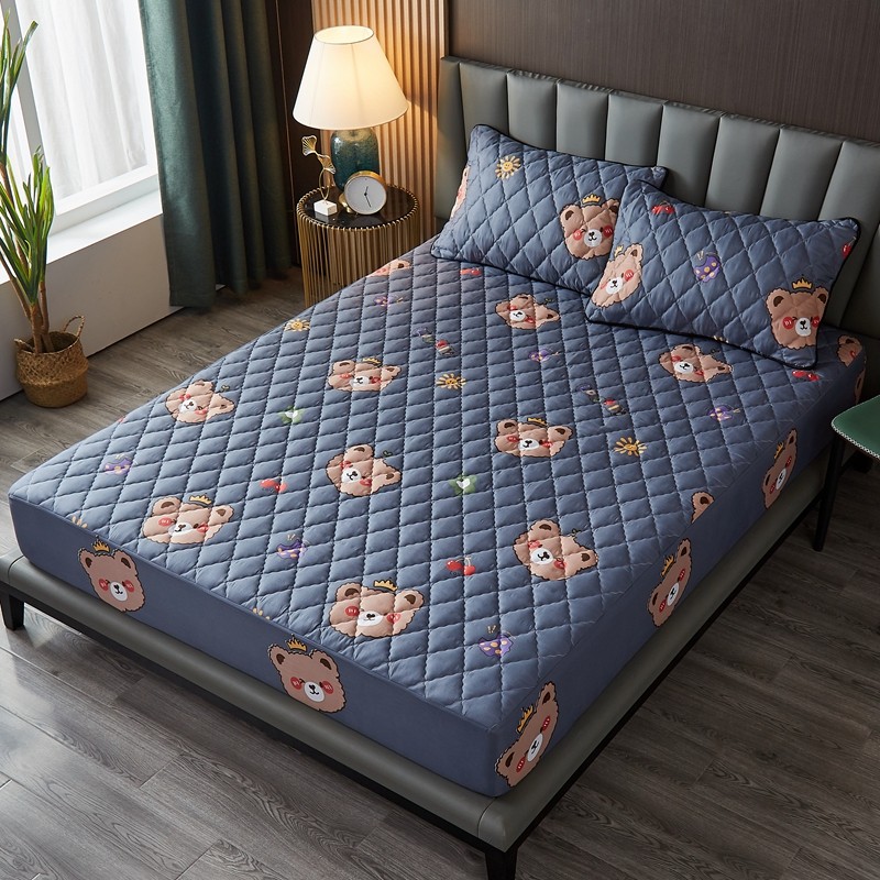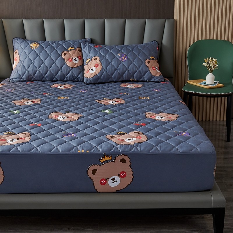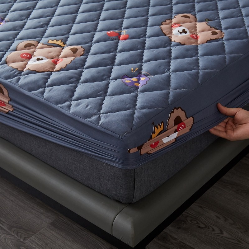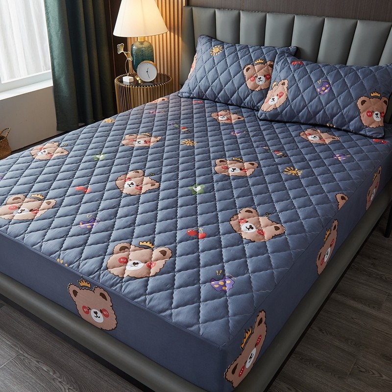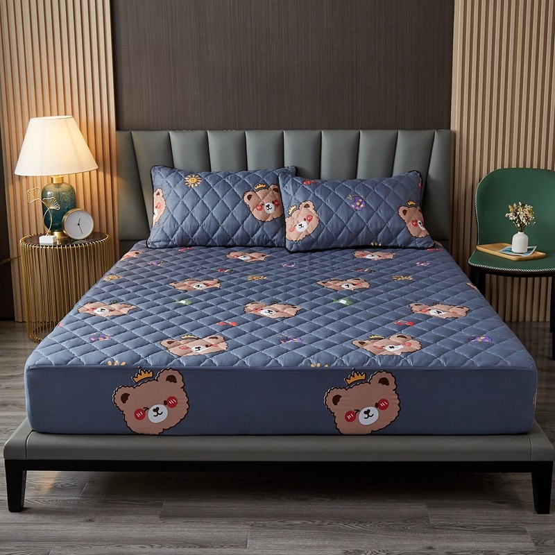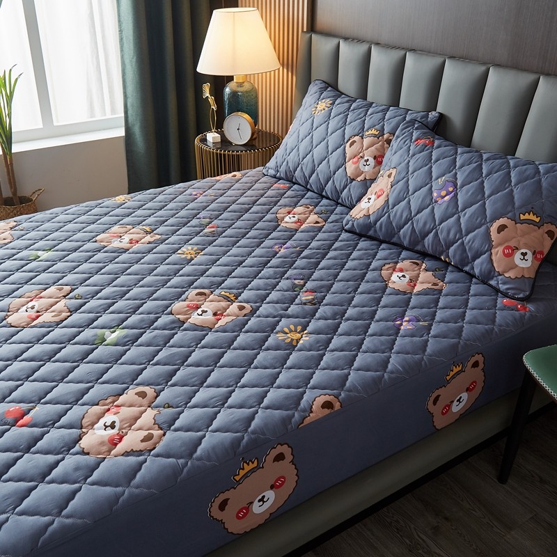 商品名称:花言狐语 2025新款水洗棉防水隔尿夹棉床笠 可爱小熊-灰
